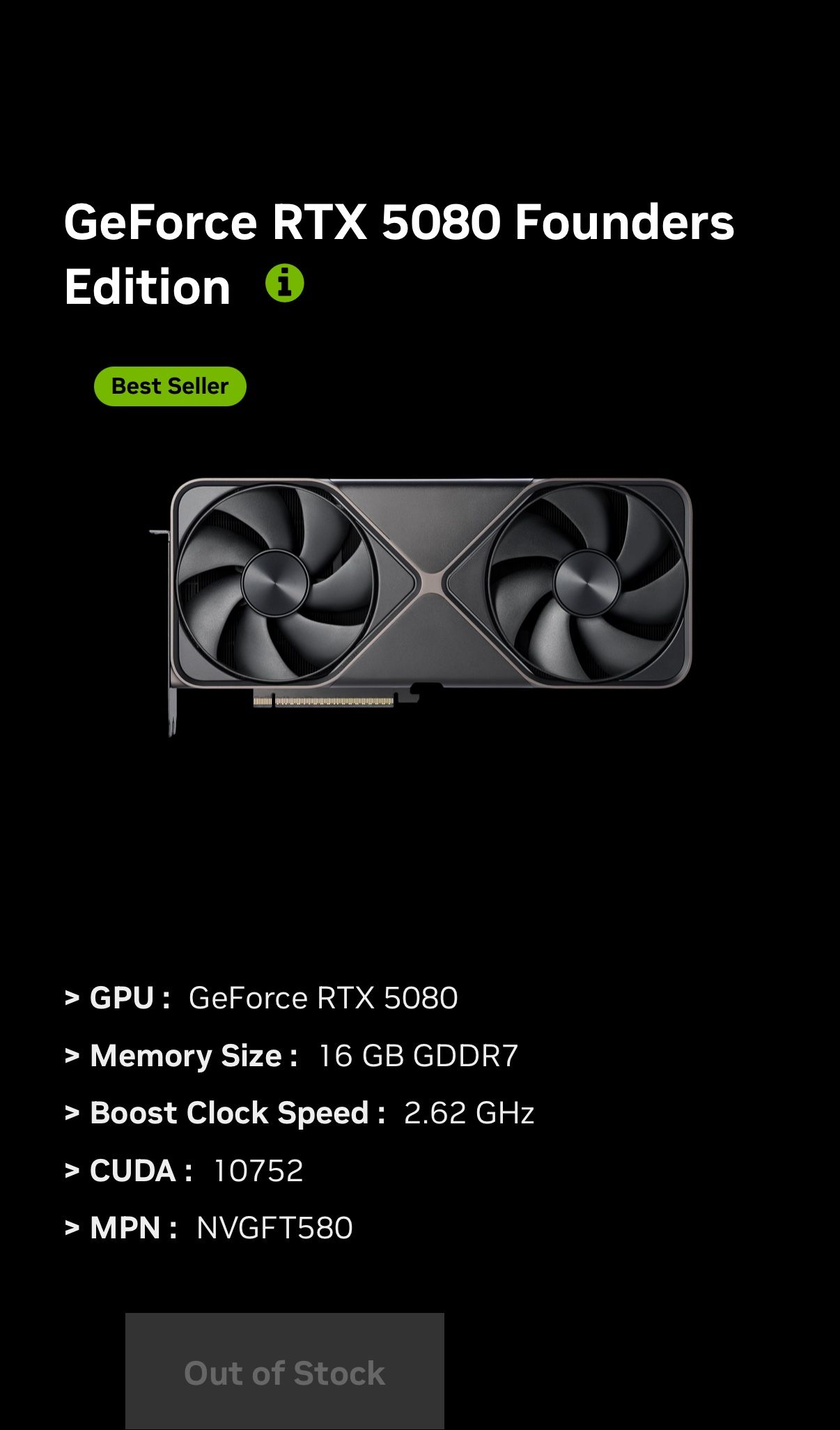 5080 Graphics Card NVDA RTX FOUNDERS EDITION
