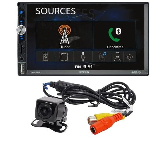 JENSEN CMR270 7-inch LED Digital Media Touch Screen Double DIN Car Stereo & JENSEN BUCAM100J Backup Camera