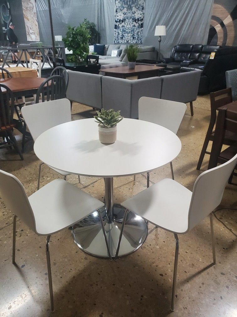 Modern 5-piece White Round Dining Set
