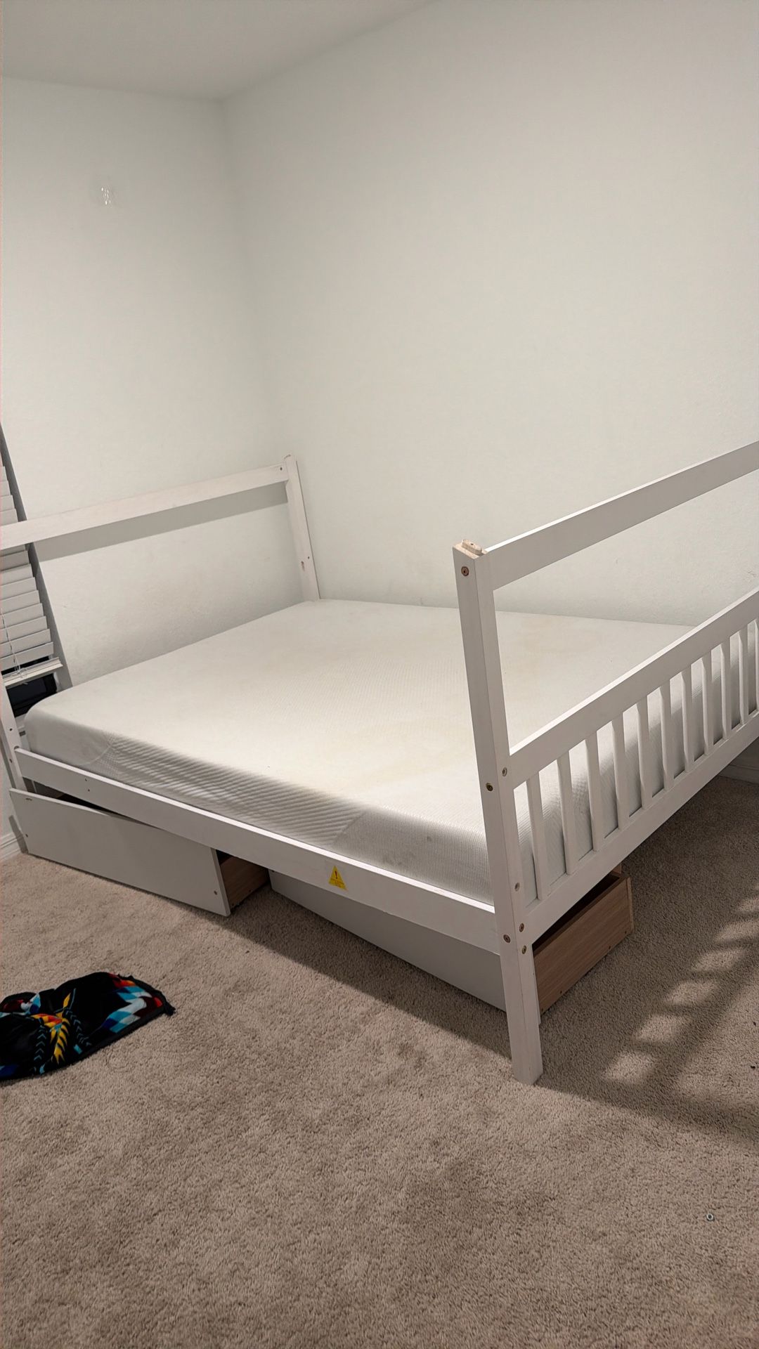 Queen size mattress with bed frame, used a few times bought brand new. I’m moving and I need gone fast . Tv stand too but little older but still good. $200 for all obo