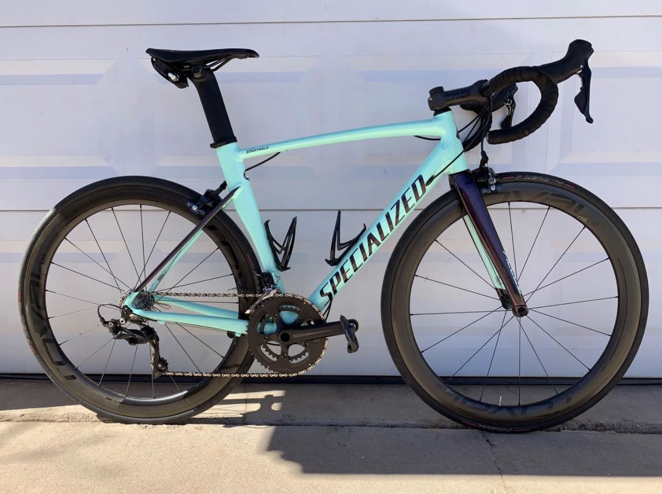 Specialized Allez Sprint Comp 56cm Roval CL50 Rapide Carbon wheels ($1300 retail) Pirelli Pzero Velo TT Tires 700x 25c Shimano 105 Groupset Zipp Cork Brake pads Praxis BB and Praxis Zayante Aluminum Cranks 110 Enve Stem 42cm Aluminum Specialized Bars Specialized 143 Toupe Saddle Ulterga pedals Specialized composite water bottle cages Specialized road bandit saddle pouch Bike is in great condition, like new. I hardly rode it. Bike is very light because of upgrades. Newer chain and cassette with low rides on them. Tires are like new with few rides on them as well. Comes with everything you see in the pictures.