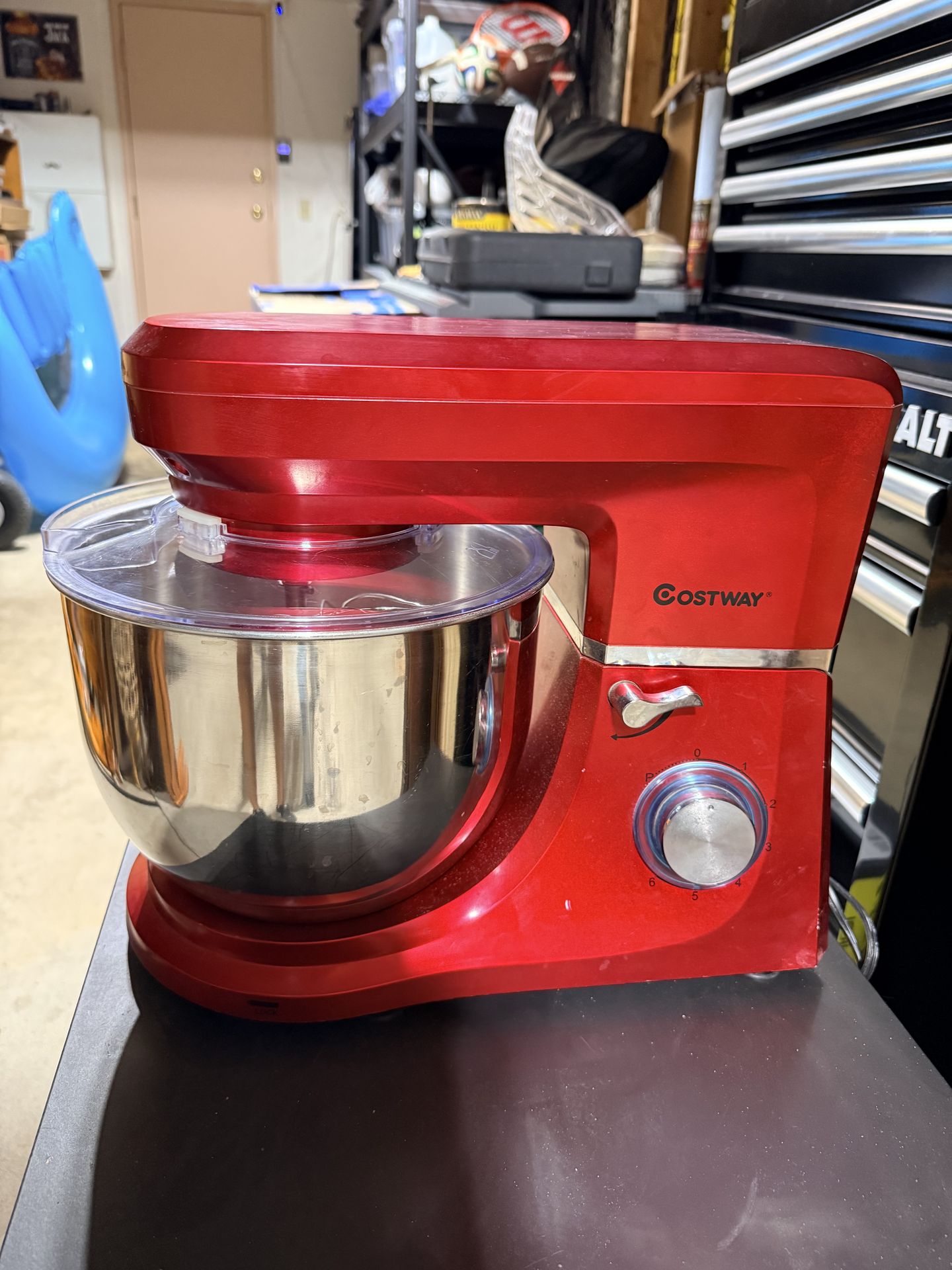Used - in great condition. About this item: - Powerful Motor with 6-speed Control: 660w high performance motor makes less noise and mixes your food in a fast and efficient way, which keeps freshness and smoothness of food. 6-speed control with pulse function means you able to choose suitable speed for different food making, perfect for a variety of recipes and different occasions. In addition, 360° stereo stirring makes the mixing effect more even. - 3 Different Attachments for Versatile Usage: Featured with 3 different attachments( dough hook, beater, whisk), it is perfectly designed for you to do all types of food mixing, including creaming, mixing, beating, whipping, kneading. You can now make a wealth of new recipes, from cakes, cookies, to breads. - 6.3 Qt Large Capacity Bowl with a Comfortable Handle:Designed with a large stainless steel bowl with a maximum capacity of 6.3quarts, it perfectly meets all your kitchen needs. You can make full use of it when family or friends meetings come around. A comfortable handle makes it easier to pour out the ingredients or to scoop them out. - Tilt-head & Anti-slip Design: ]The tilt-head design mixer allows access to install or uninstall bowl and its attachments easily by an easy-to-control knob, which also convenient for you to add ingredients for a recipe. Anti-slip suction cups are specially designed to keep mixer balanced and steady while working. - Easy to Use & Clean:]A handle helps to move the bowel easily and tilt back design makes it easy to use this machine via an easy-to-control knob. The bowl made of stainless steel is easy to clean. A splash guard help you add ingredients without making a mess, which helps you to keep your kitchen clean.