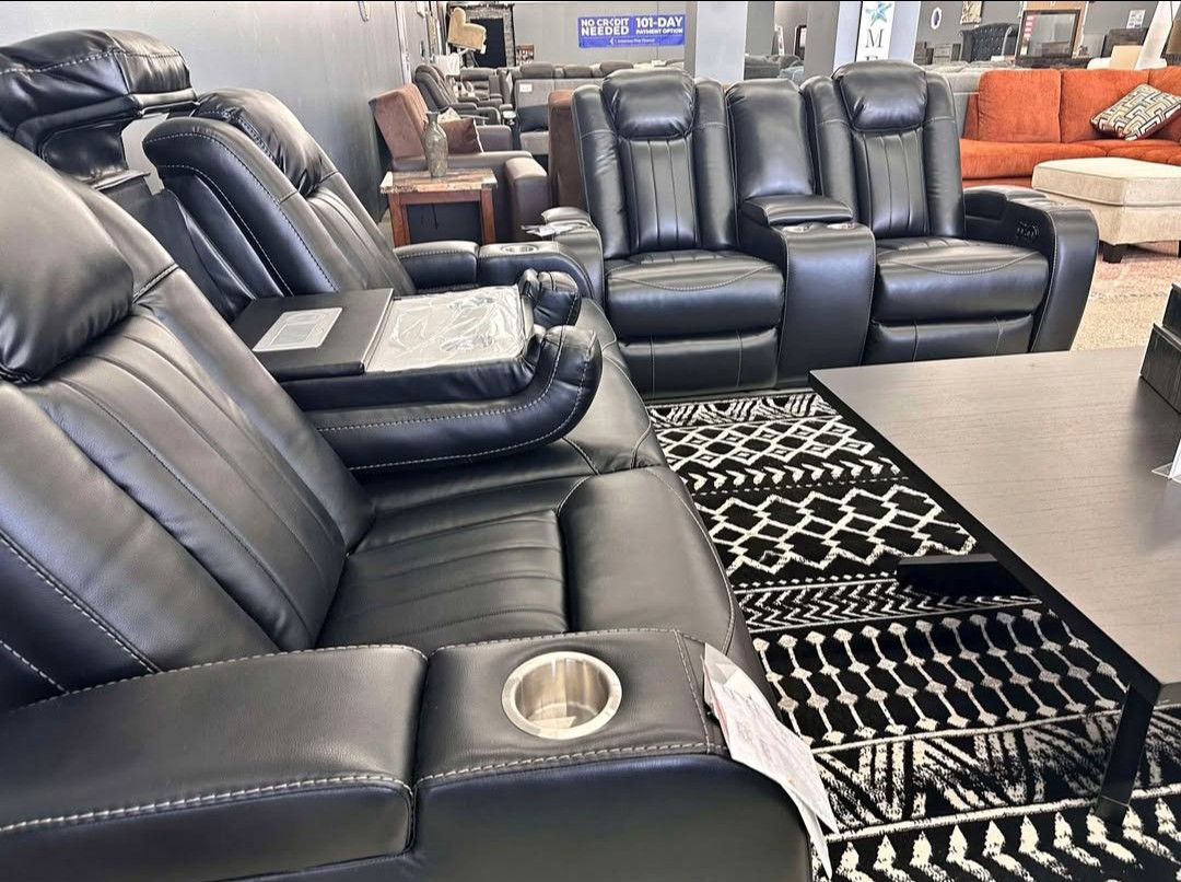 Dark Charcoal Leather Power Reclining Sofa And Loveseat