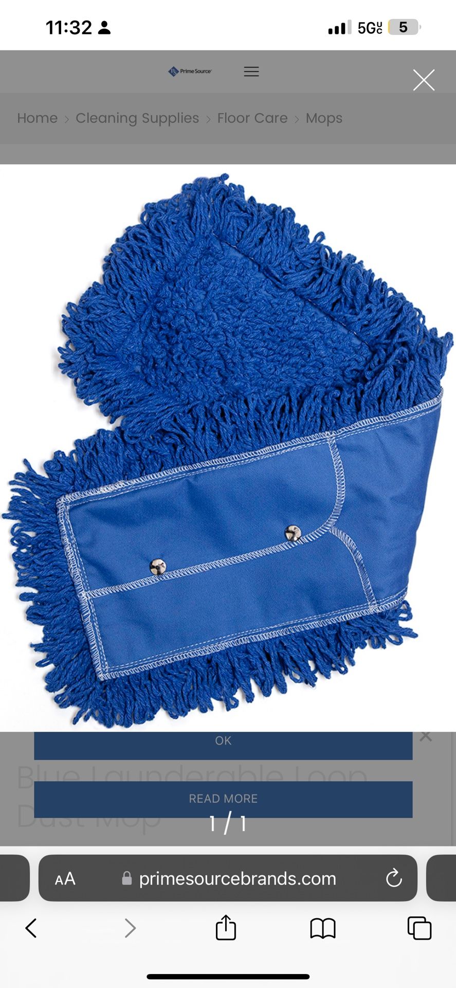 Blue washable 36” looped dust mop case with 6
