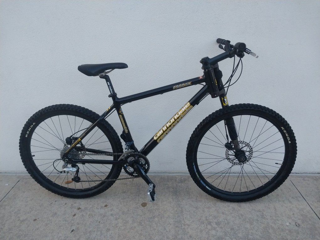 I am offering up for sale this Rare CANNONDALE F900SX 27 Speed Front Suspension Mountain Bike Hardtail MTB Bicycle with Lefty Fork and Hydraulic Disc Brakes. THIS BIKE IS CONSIDERED A MEDIUM AND WILL FIT RIDERS 5'7" - 5'11". The components of this bicycle consist of the following parts : CANNONDALE F900SX Handmade in the USA CAAD 4 Aluminum Design 18" (45.7 cm) Frame CANNONDALE Head Shok LEFTY Suspension Shock Fork CODA Threadless XL Stem CANNONDALE Threadless Headset CANNONDALE MTB Riser Handlebars CODA Grips Shimano Deore LX Trigger Style Shifters CODA Expert Hydraulic Brake Levers (Front and Rear) CODA Expert Hydraulic Disc Brake Calipers (Front and Rear) KALLOY Dimension 3 Clampless Seatpost CODA Seat Clamp CODA Padded Saddle Seat Shimano Deore LX Front Derailleur Shimano Deore XT Rear Derailleur Shimano Alivio 170mm Cranks Shimano Caged Style Pedals KENDA Nevegal 26 X 2.10 26" Knobby Tires Cannondale 32-Spoke Aluminum 26" Rims with CODA Expert Hubs and Coda Expert Disc with Quick Release on Rear 30" stand over height Even though this bike is USED, it shows very little signs of wear and is still in very good condition and 100% rideable. This is a very RARE bike.