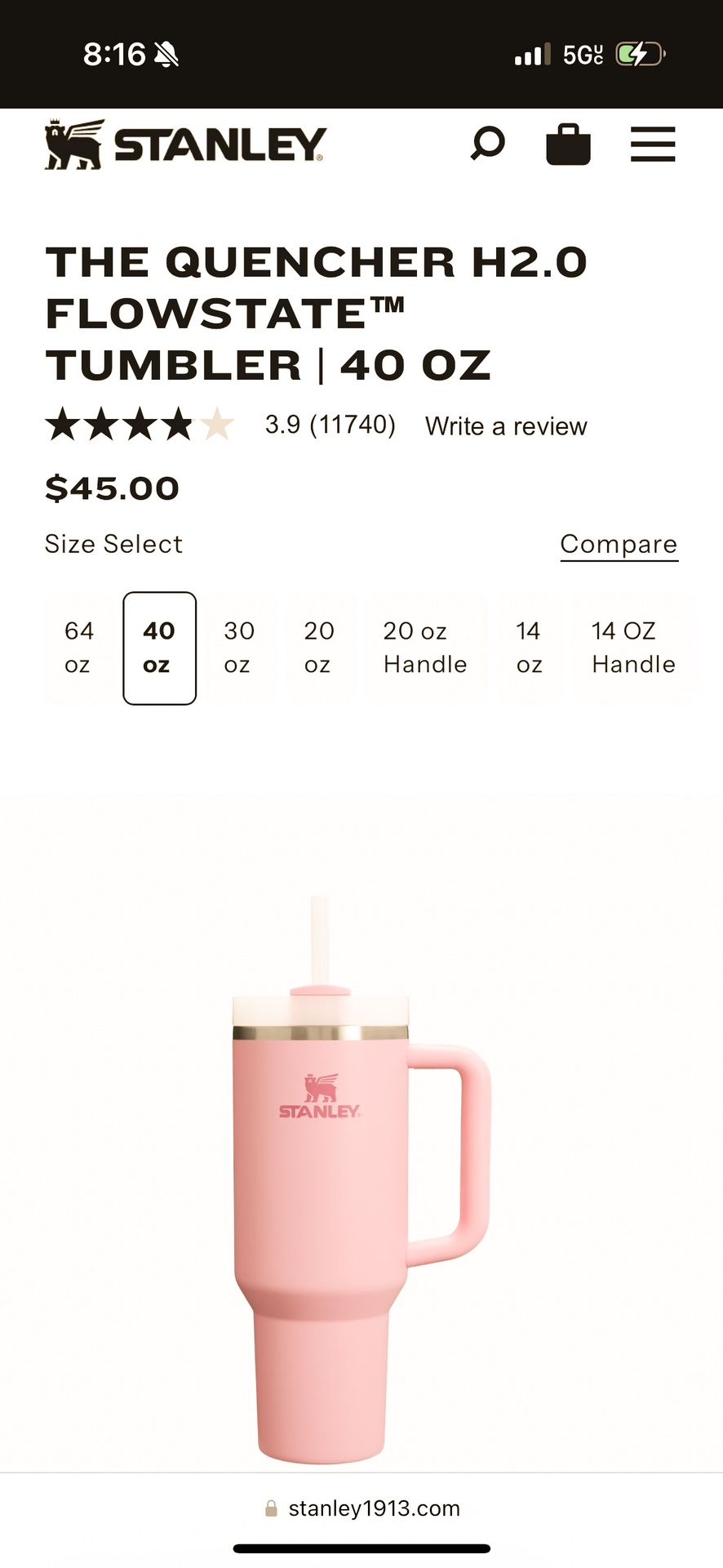 Stanley Quencher H2.0 40oz Flowstate Quencher Tumbler - Cherry Blossom Pink
