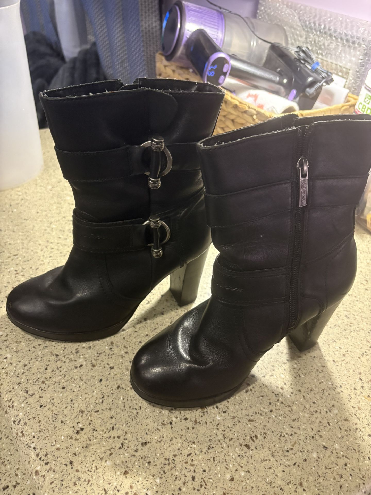Harley Davidson, black heeled boot for writing. Size 7. In great condition.