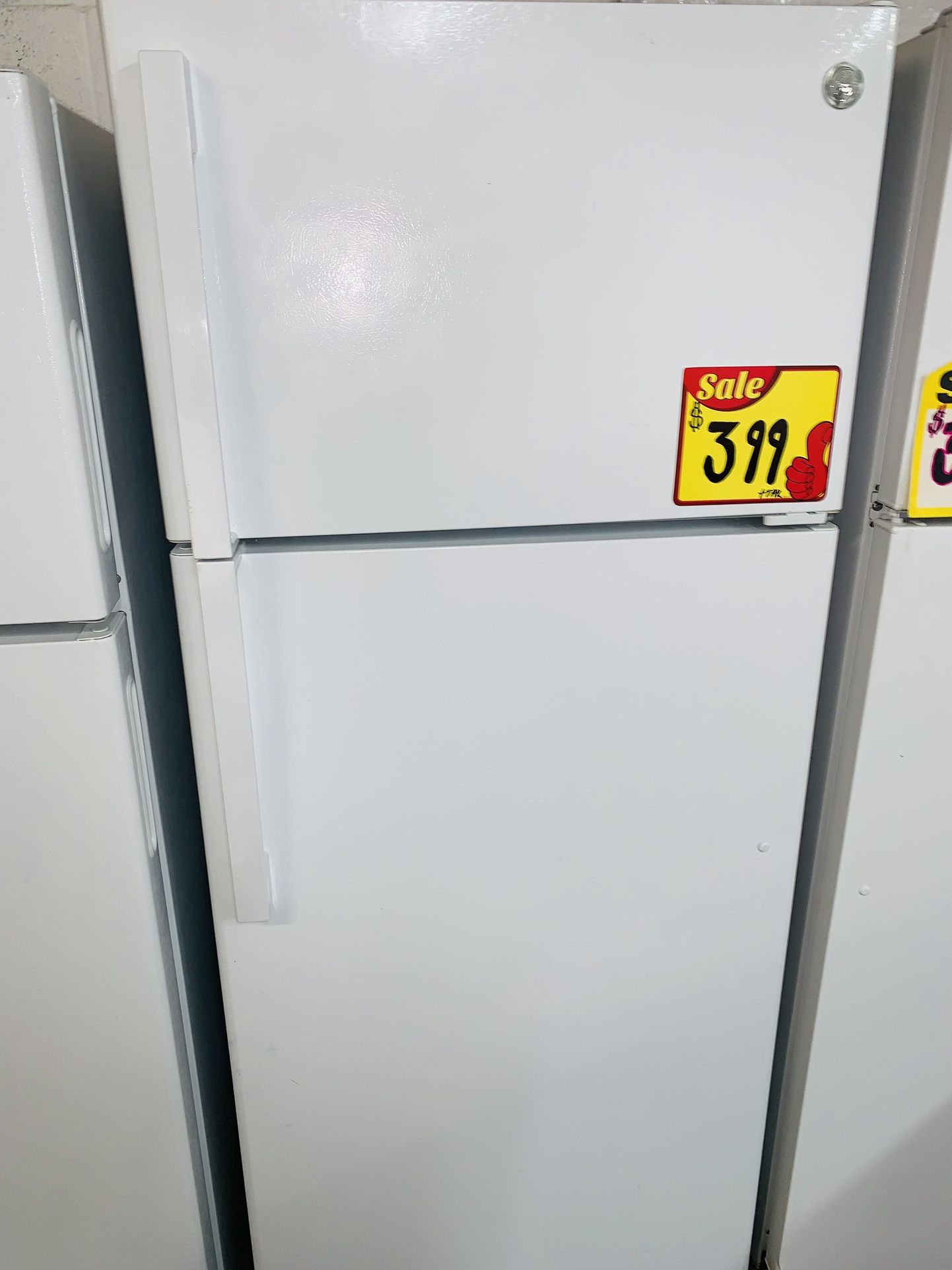 GE top mount refrigerator works perfectly, nice shelves, handles. Clean inside and out like new condition. Come check it out we have others like it