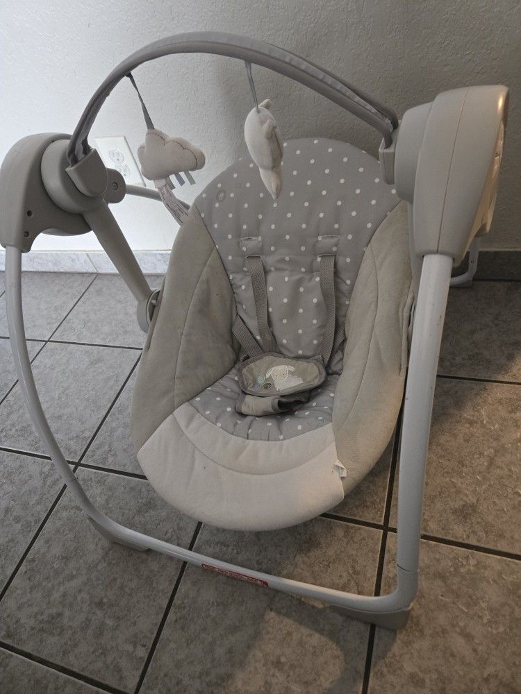Battery operated baby swing with mobile. Folds up. Asking for 30 or OBO