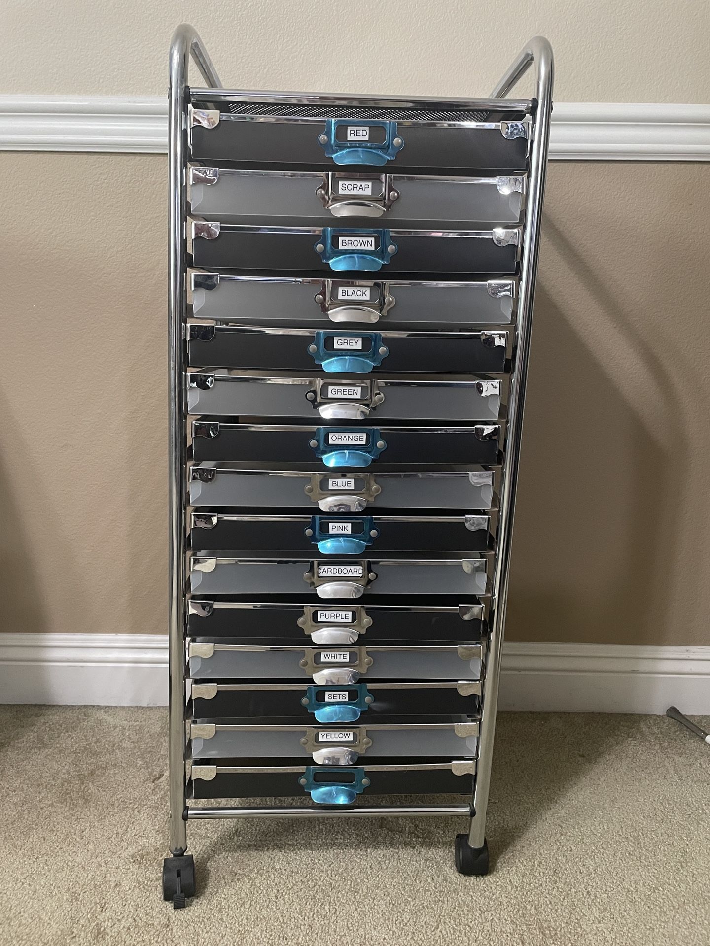 37.5” x 14.75” x 12.5” 15 Drawers Locking wheels Perfect fit for 12” x 12” Paper