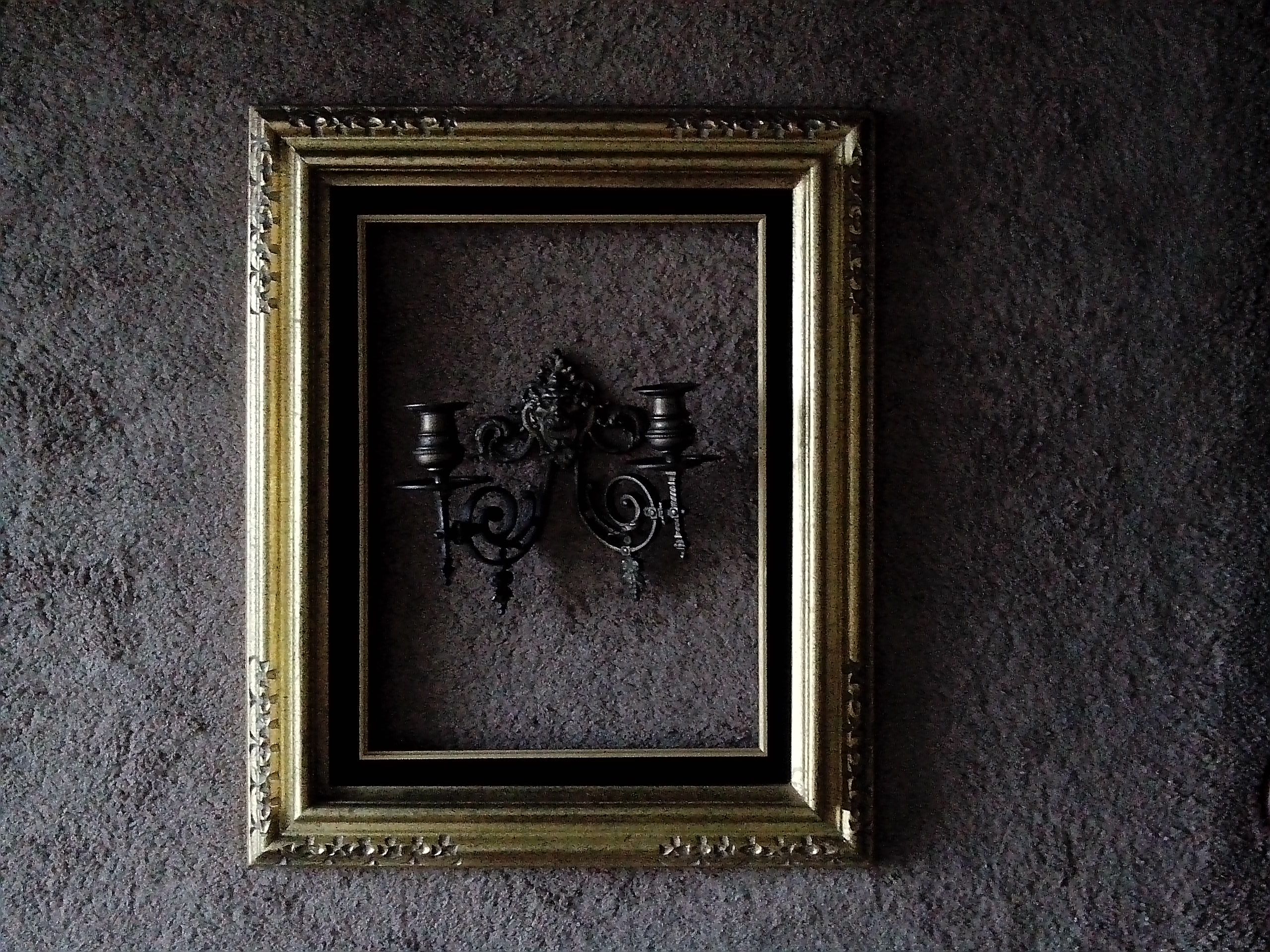 Vintage Golden Wood Framed-Wall Double Candle Holder Sconce Combination