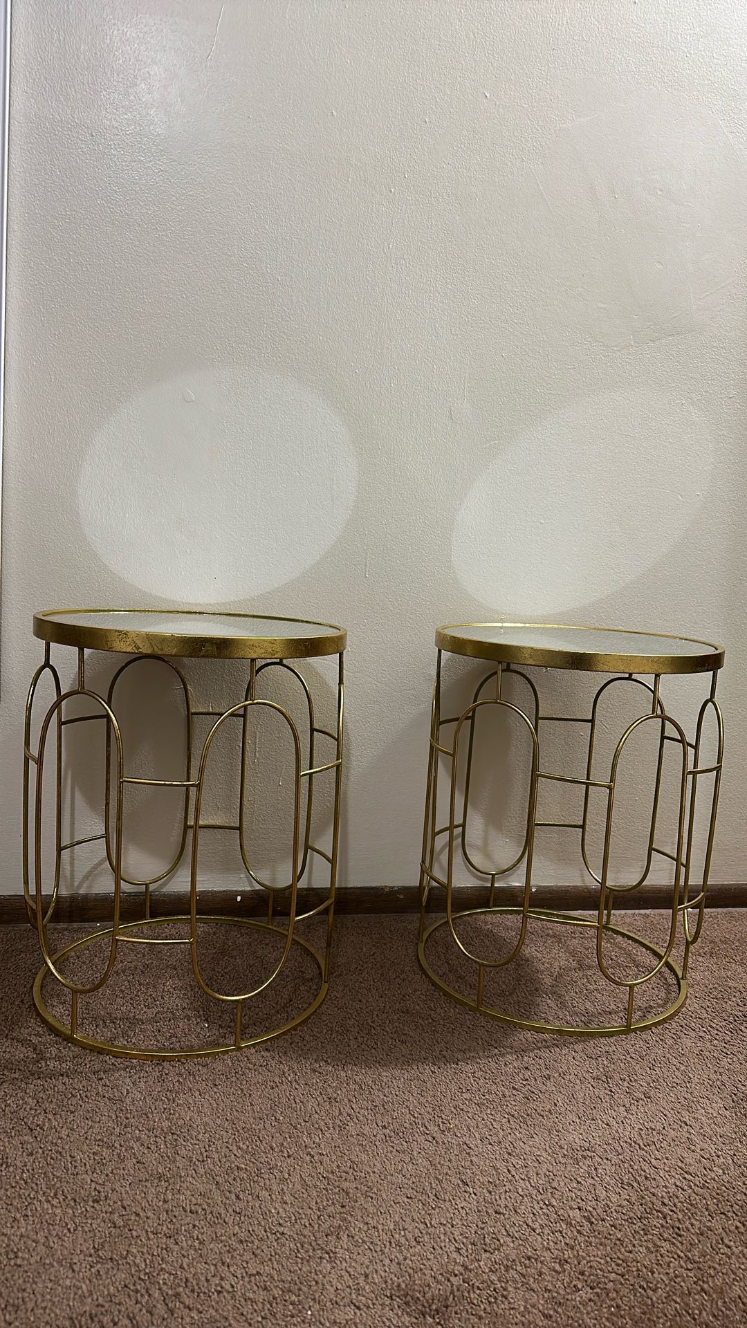 This beautiful table features a vintage-inspired design with a gold finish and a round mirror top. The tripod base design adds a touch of elegance, making it perfect for placing next to your sofa or chair. Plus, it's crafted from durable iron and glass, ensuring it will last for years to come . Condition: Gently used, Material: Gold metallic round top mirror Pickup: Local in Minnesota Price: $55