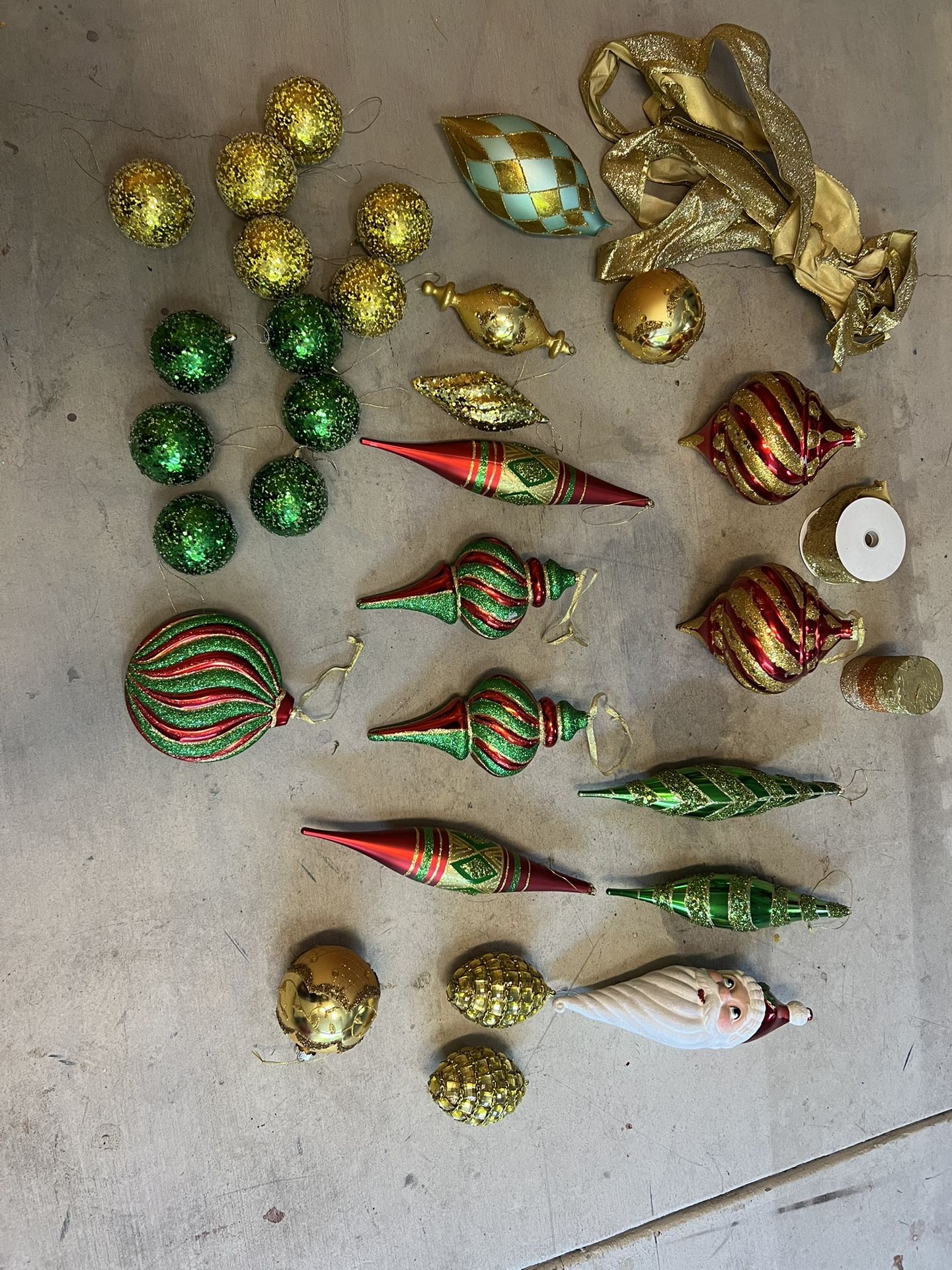 Russian style Christmas ornaments Holiday decorations 29 hanging ornaments, one candle , gold tinsel ribbon