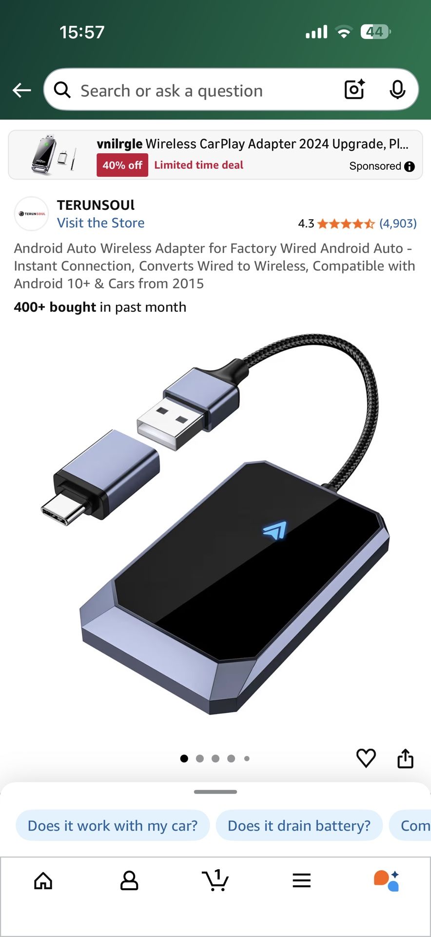 Android Auto Wireless Adapter for Factory Wired Android Auto - Instant Connection, Converts Wired to Wireless, Compatible with Android 10+ & Cars from 2015