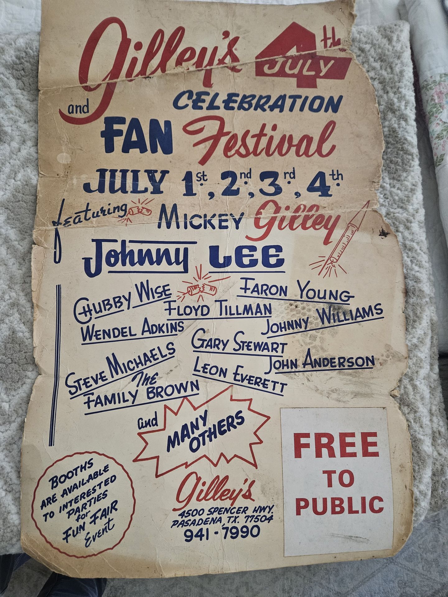 Own an original piece of famed Gilley's memorabilia... Gilley's 4th of July poster (1984) 14 × 22 Rare item from the one and only Gilley's nightclub with Pasadena, Tx insignia!