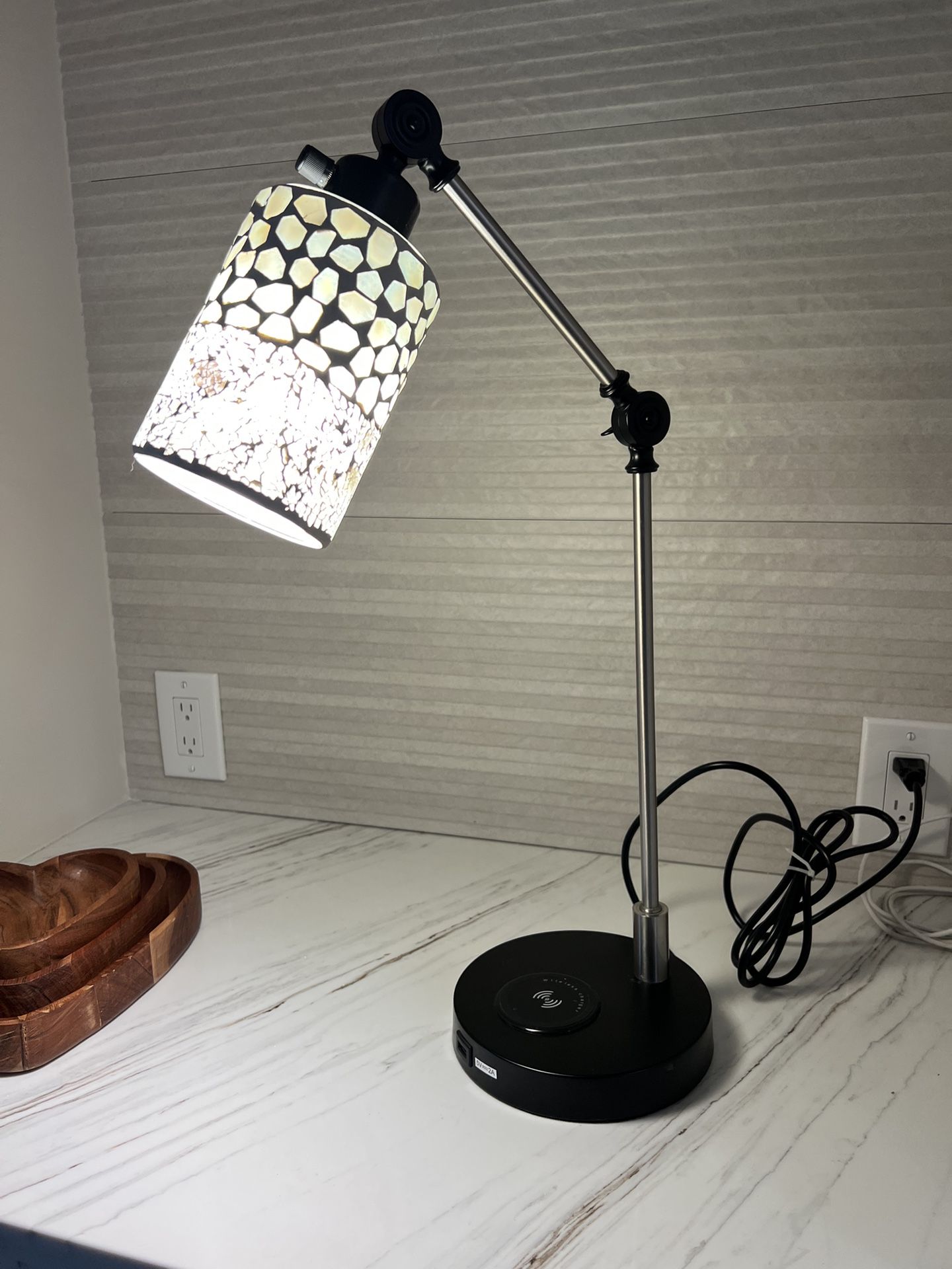 Tiffany Style task lamp with wireless charging and USB port — adjustable height