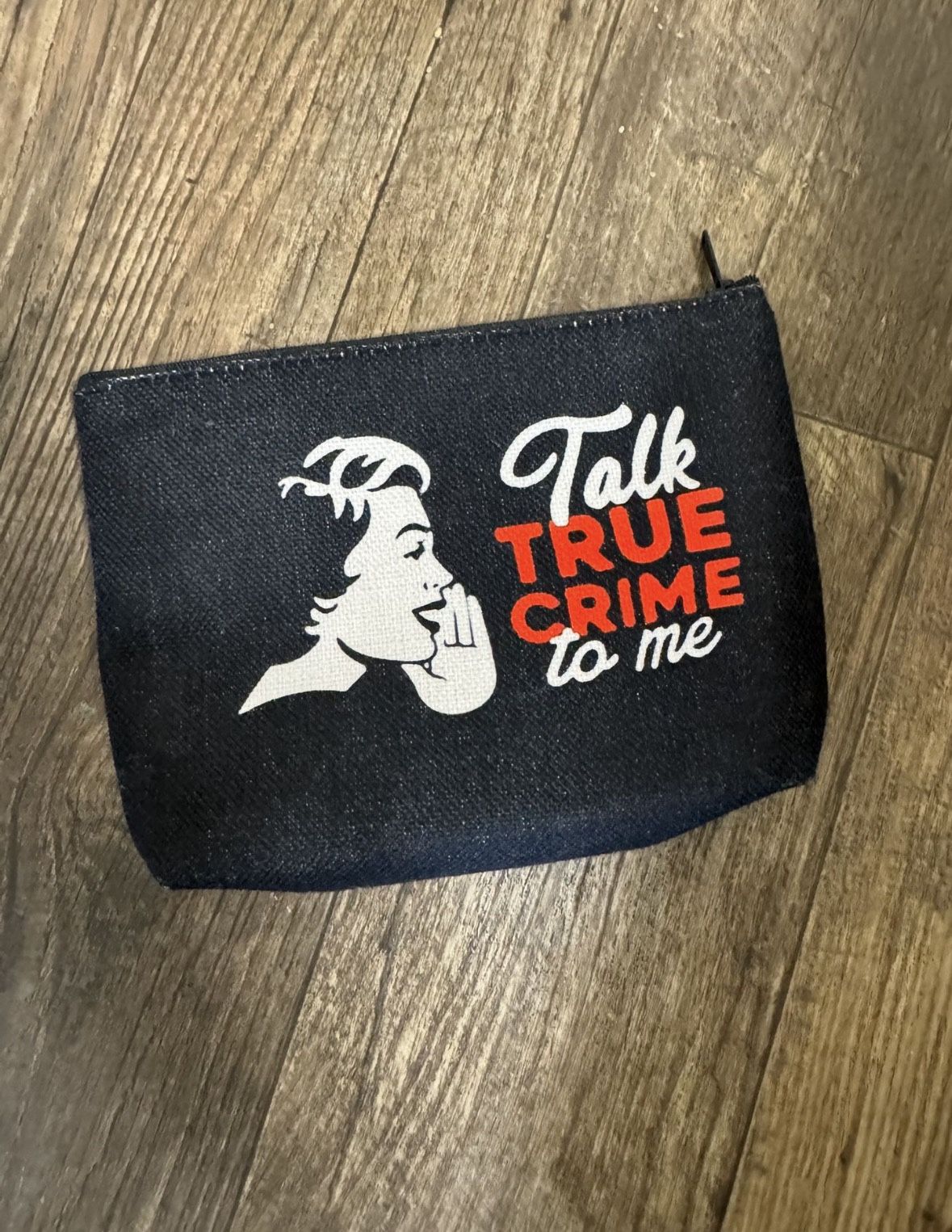 NEW Talk True Crime To Me Pouch. Cosmetic Bag. Pencil Bag. Black