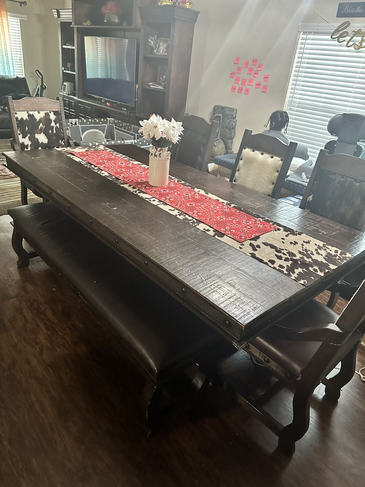 Lonestar Rustic 8 Piece Table And Cowskin/leather Chair Set!