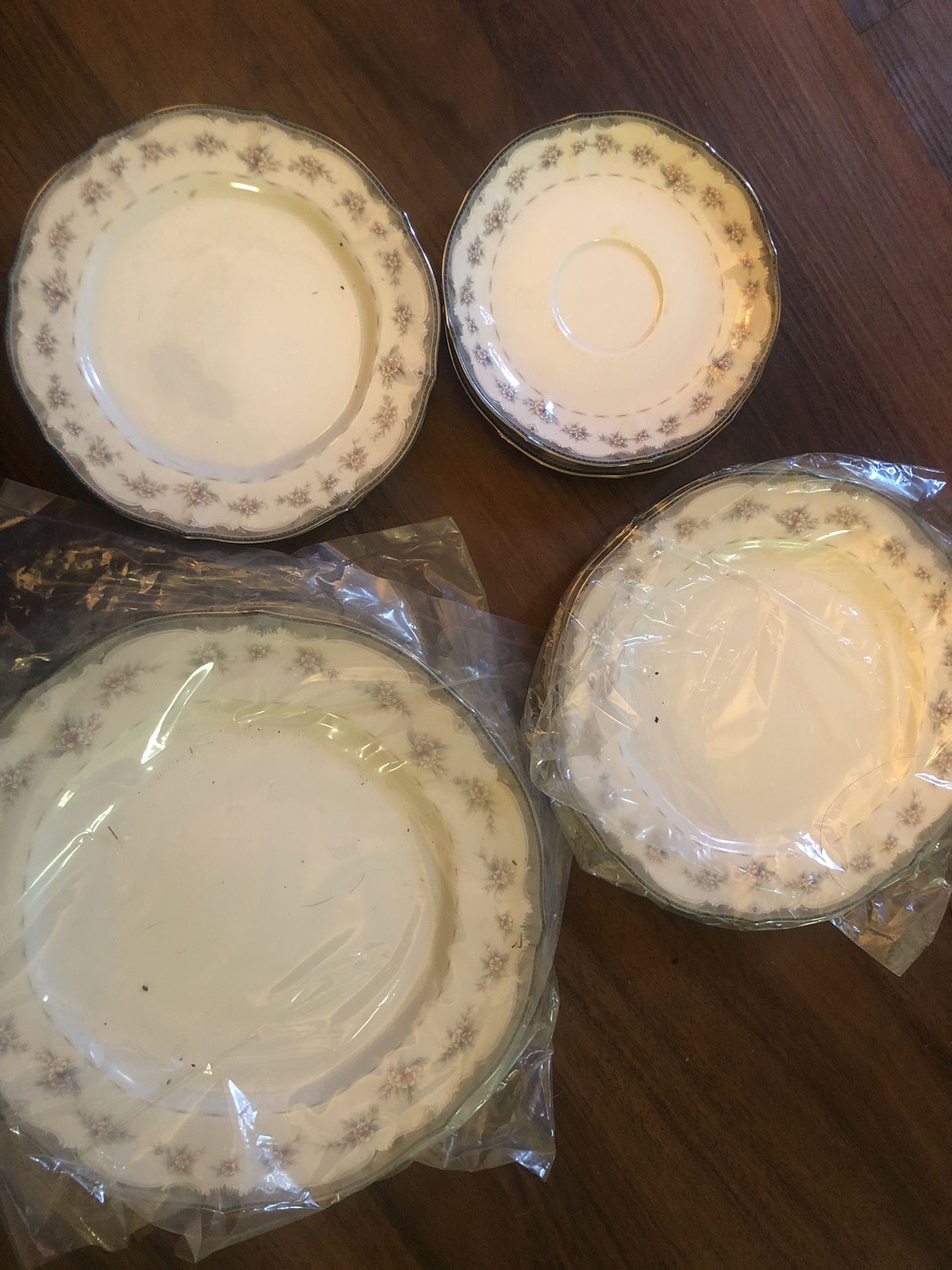 2 saucers, 2 bread plates, 2 salad plates 2 dinner plates