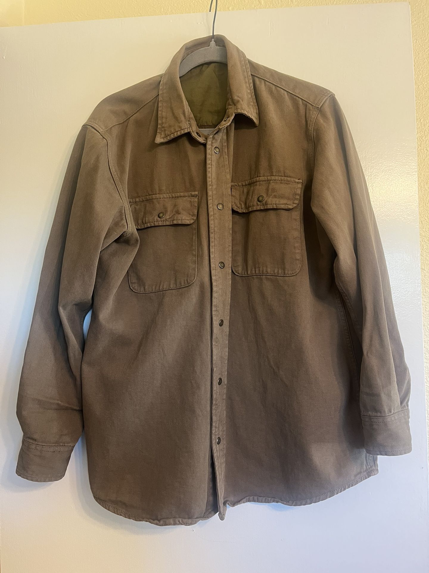 Brandy Melville, Unisex, oversized, brown utility jacket (shirt/jacket). Buttons and unbuttons all the way up. Adjustable buttons for wrists.