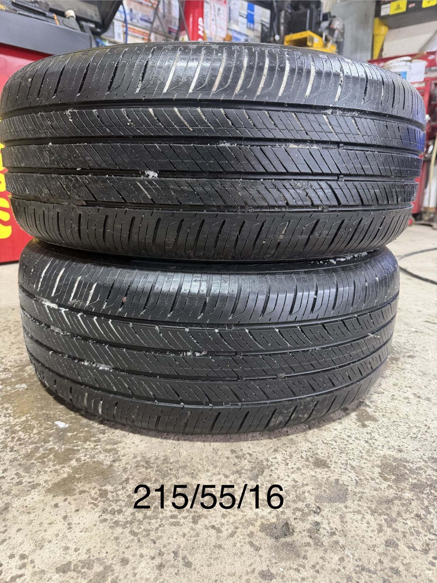 (4) - 215/55/16 Hankook Kinergy GT All Season Tires Tread - Approximately 8/32nds Condition - No plugs, no dry rot, no shifted belts. Tires hold air and pass state inspection.