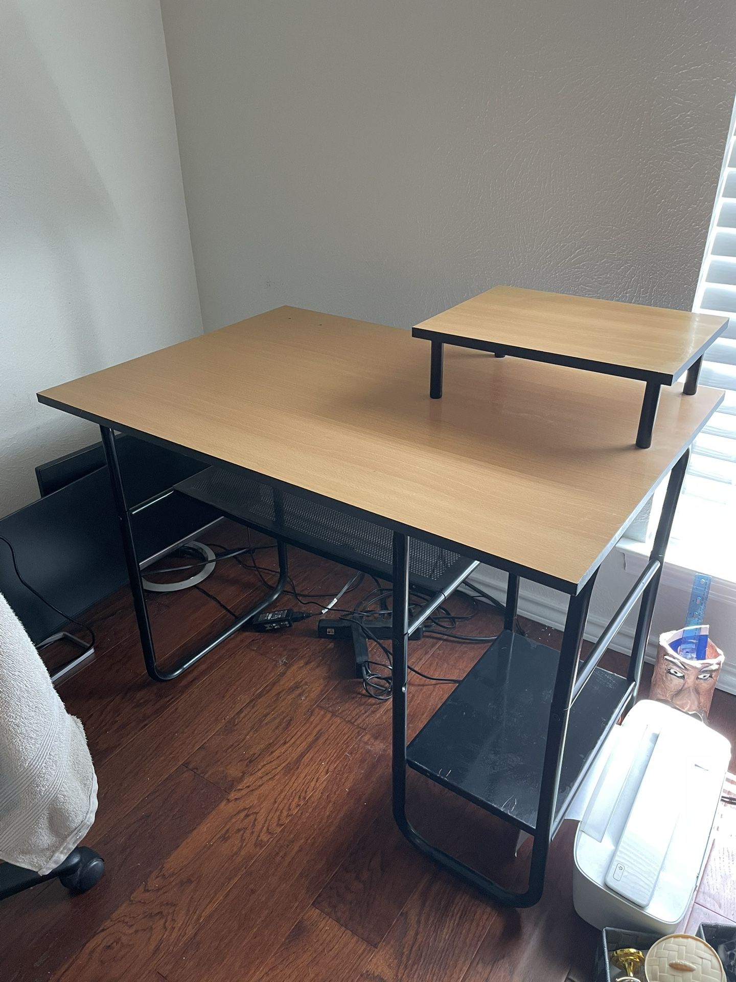36 inches long, 24 inches wide, 28 inches tall. Great desk for studying used by my son but he graduated. Pickup garland Tx cash or Zelle