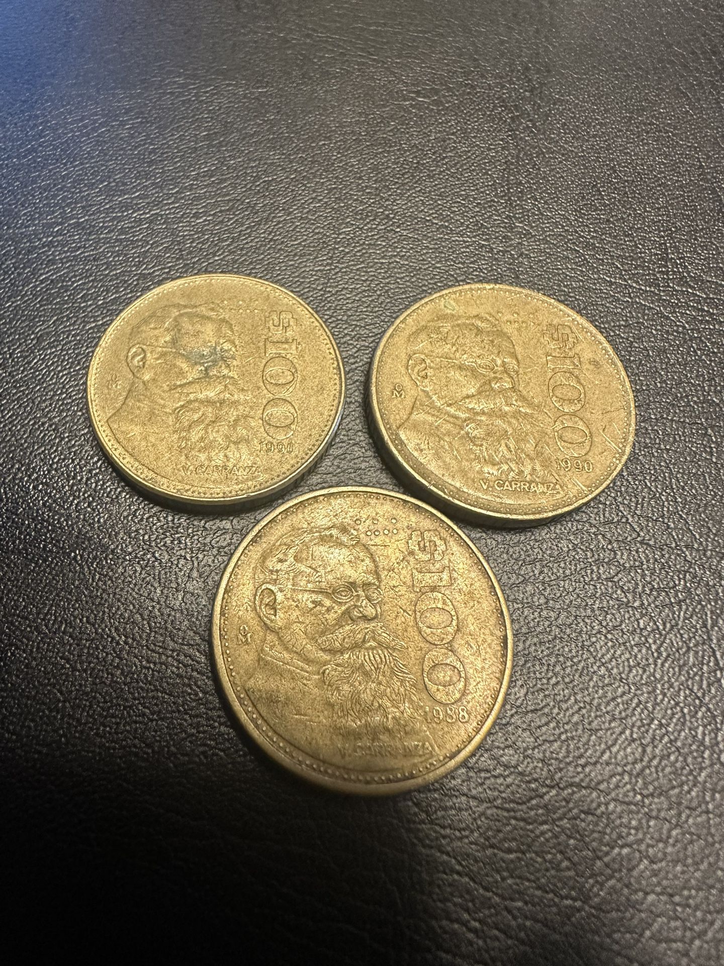 This lot includes 3 x 100 peso (old peso) Mexican coins. These are collector coins and are not used in modern Mexican currency. 1988 - 100 peso 1990 - 100 peso x 2