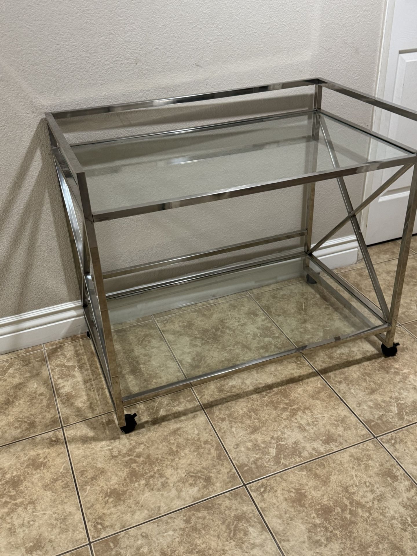 Chrome Glass Bar Cart with Shelf Rolling Serving Cart for Home Decor Retail price is $300 letting go for cheap no longer need it. Everything works. Perfect price is firm.