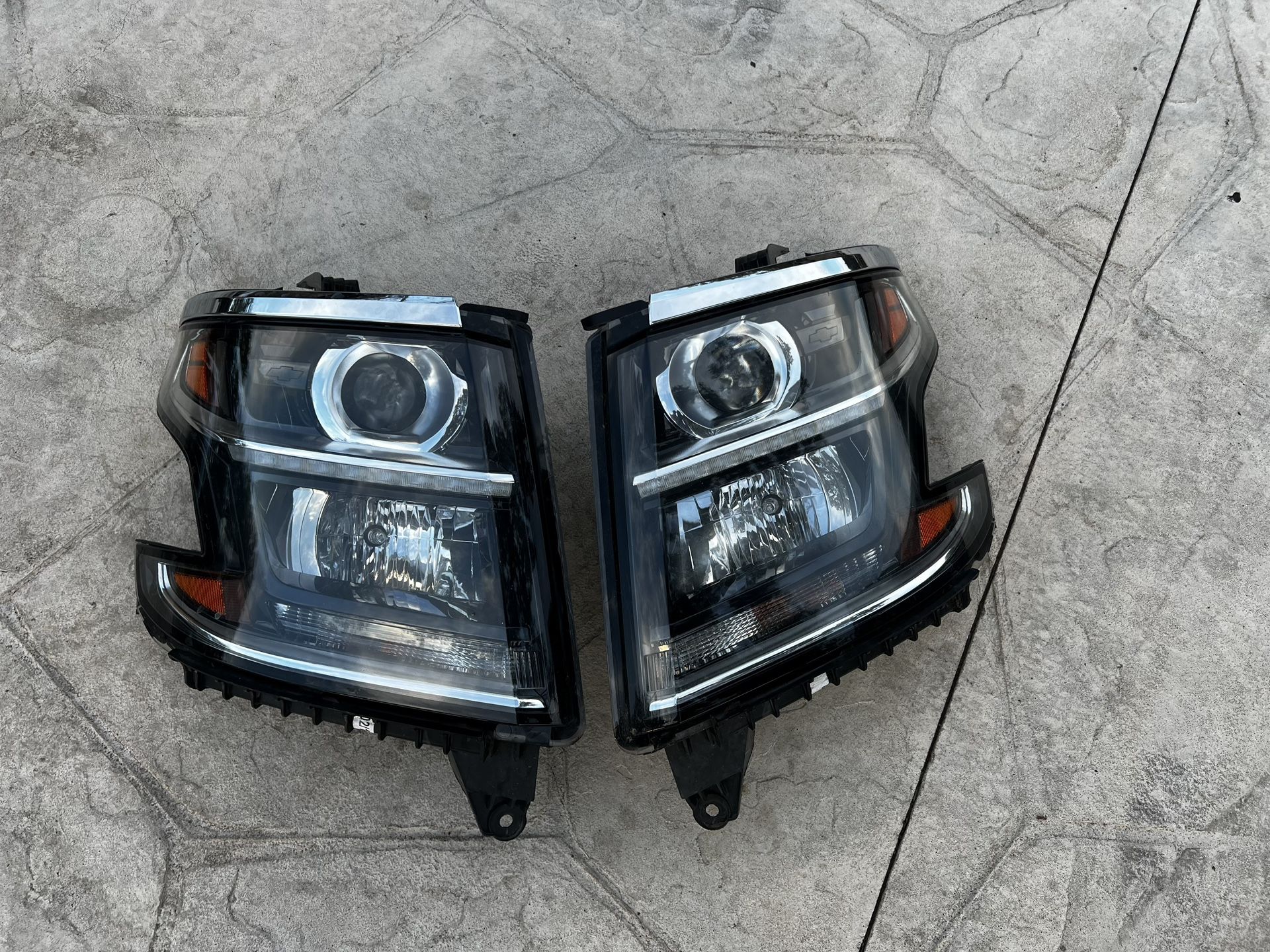 2015 to 2020 chevy tahoe OEM hid headlights with runnings led both in good condition nothing wrong Asking $740 for both Luzes de tahoe del 2015 al 2020 estan en buenas condiciones son originales con computadora