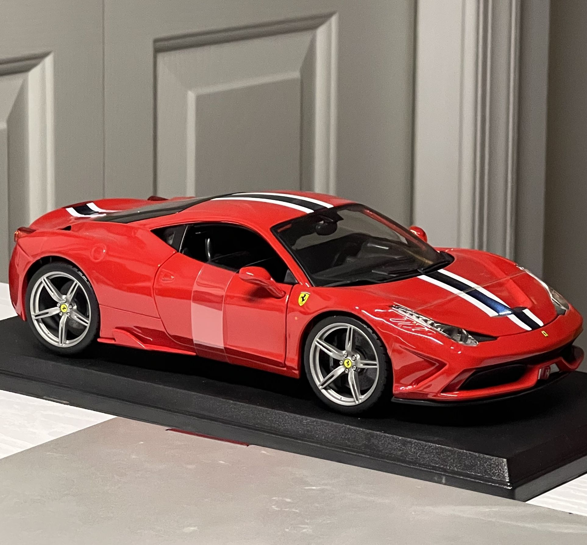 Ferrari 458 Speciale Red Die cast metal with plastic parts - Size 1:18 - Maisto - Opening doors and parts - Adjustable front wheels - Workable steering - Independent spring suspension for wheels