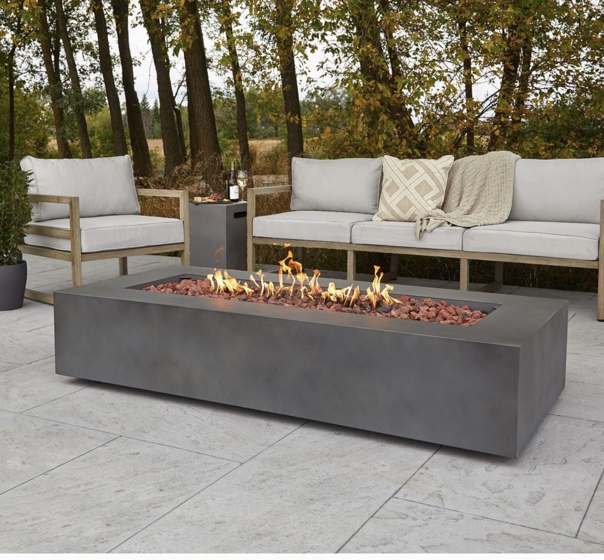 Elevate your outdoor living space with this Real Flame AEGEAN fire pit table in the sought-after Weathered Slate finish. Modern and architectural in design, this low-profile fire table adds warmth, ambiance, and sophisticated style while functioning as both a fire feature and a sleek outdoor coffee table. Only used once and in like-new condition. Constructed from durable powder-coated materials designed for outdoor performance, the Aegean features adjustable flame control for customizable heat and atmosphere. Compatible with propane and includes a natural gas conversion option for flexible installation. Perfect for contemporary, coastal, or modern Mediterranean outdoor spaces. Features: • Weathered Slate finish • Propane fire pit (natural gas conversion included) • Adjustable flame height • Modern low-profile design • Durable weather-resistant construction • Burner lid included (converts to coffee table) • Lava rocks included • Protective cover included • Push-button ignition • CSA certified Dimensions (approximate): • Height: approx. 14.5”–15.25” • Width: approx. 36”–50”+ depending on configuration • Depth: approx. 26”–36” Condition: Like new — used once. Retail on sale of $1500. Purchased at $2500