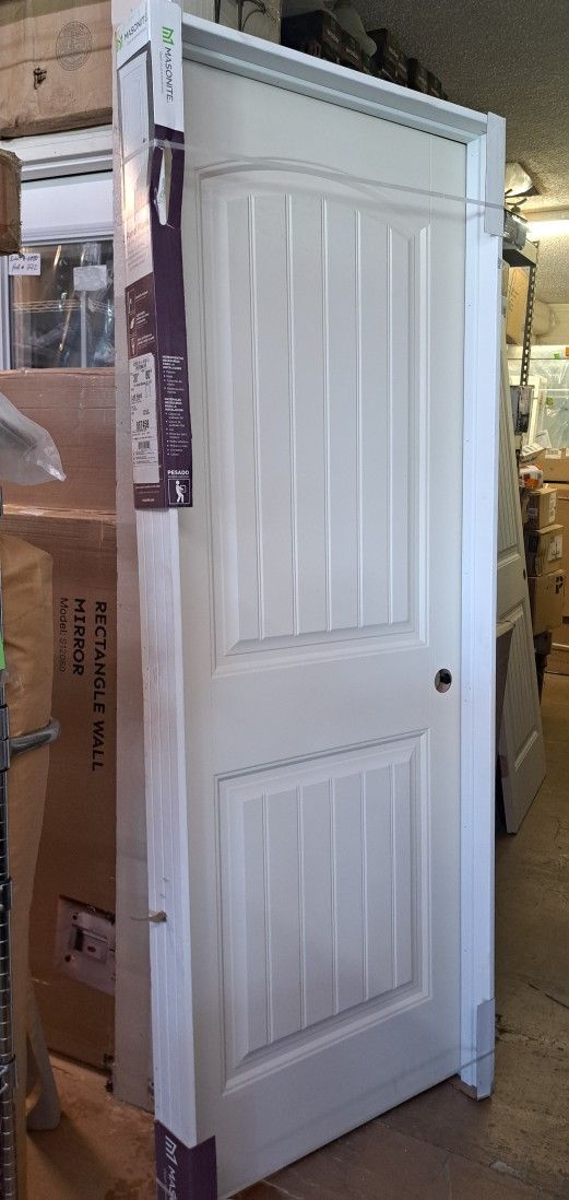 Masonite 30 in.x 80 in. 2 Panel Left-Handed Primed Composite Hollow Core Single Prehung Interior Door 4-9/16in. Flat Jamb