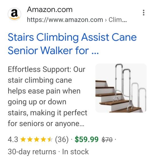 Versatile 2-In-1 Design: Eillion stair climbing assist cane easily transitions from a reliable walking aid on flat surfaces to sturdy support on stairs, offering unmatched versatility for seniors. Built to last, it’s lightweight and easy to carry, weighing just 4.8 pounds, perfect for both indoor and outdoor use. Effortless Support: Our stair climbing cane helps ease pain when going up or down stairs, making it perfect for seniors or anyone with sore hips, knees, or those recovering from surgery. The climbing cane handles are coated with soft, durable, non-slip foam to ensure a comfortable and secure grip. Custom Fit Stair Walker: Our stair assist devices features four adjustable height levels and adjustable foot pads to fit various heights and stair configurations, making it suitable for both stairs and flat surfaces. This ensures a secure and comfortable experience, adding convenience and extra security for the elderly. Secure Grip & Dual Stability: Designed for seniors and those with limited mobility, our step assist cane features padded armrests and anti-slip rubber tips for safe stair navigation. The dual climbing cane handles offer a stable and reliable grip, providing extra stability to prevent slips and falls. Your Satisfaction, Our Priority: Our walker for climbing stairs is easy to use and transport, and requires no tools for assembly. Simply wipe with water or a damp cloth to clean. For any questions, our friendly team is ready to help!