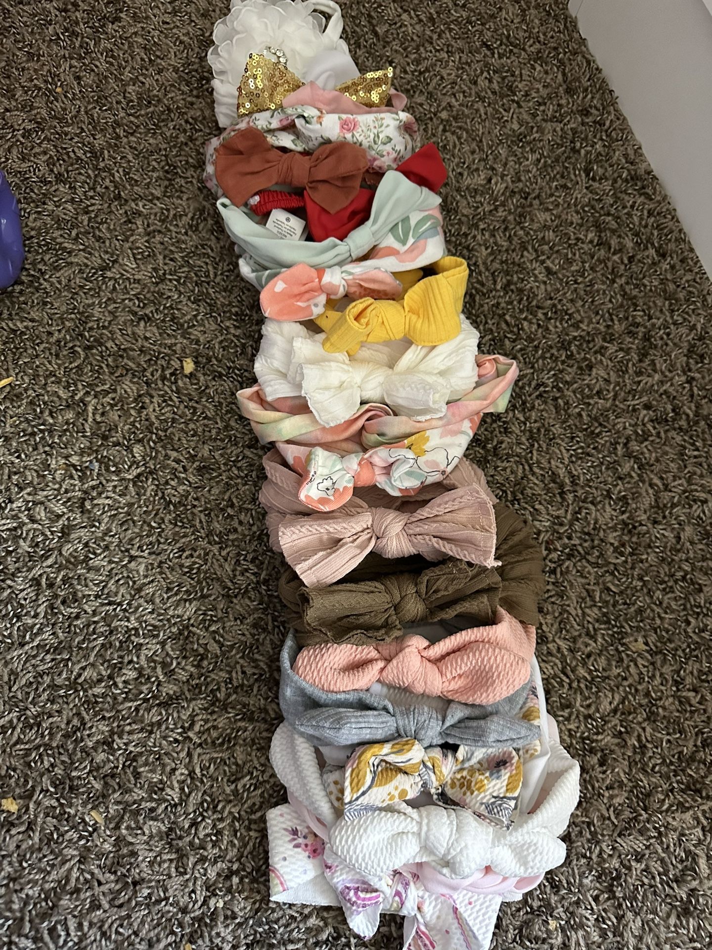 All for $5. Some new. All in good condition. Pick up only. Bows vary from new born to 24 months and up.
