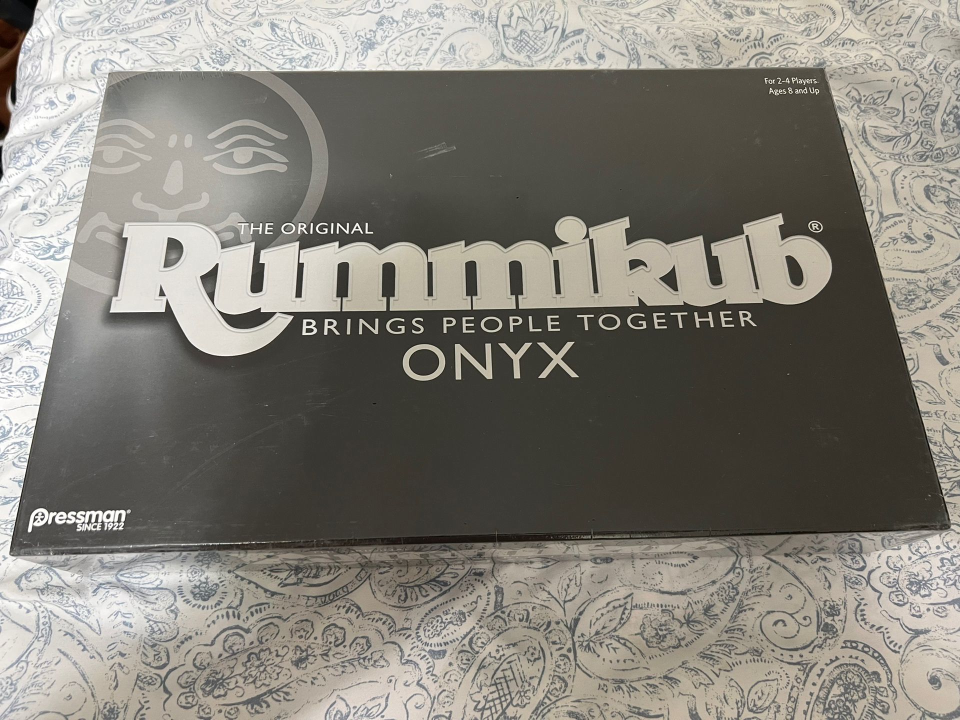 Special Rummikubs Onyx Edition. New in box, shrink wrapped. The Rummikub tiles are black and cool.