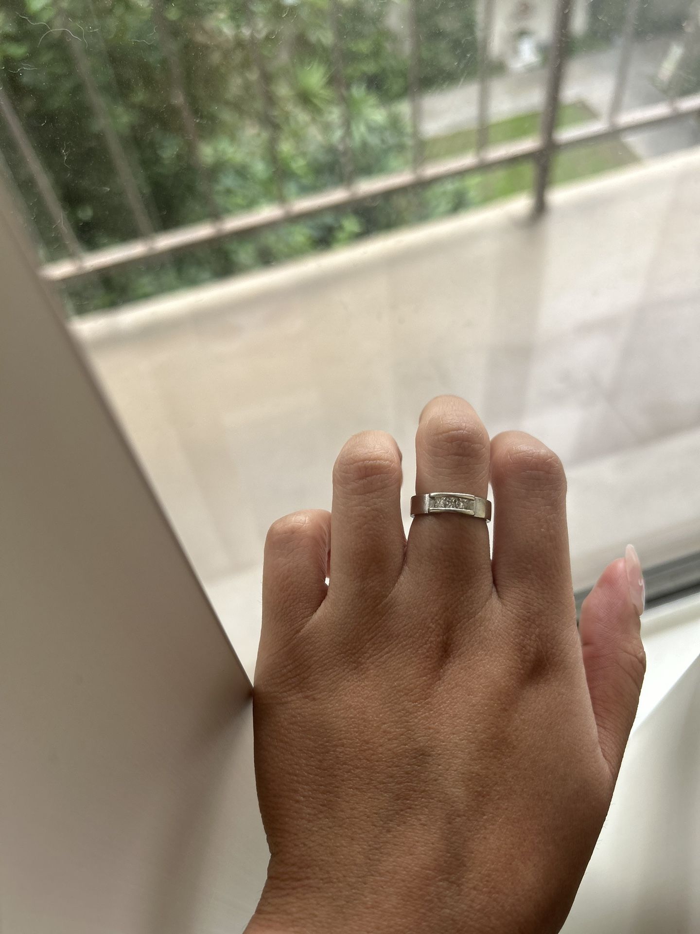 Silver tone 14K Gold Ring with 3 diamonds, Size 5 ring size