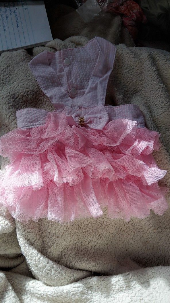 This is a homemade pretty pink dress for the discerning dog. Brand new in plastic. I have two will combine shipping on any items you buy. Thanks for looking