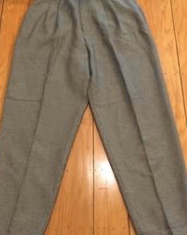 Vintage Jay Jacobs houndstooth black and white pleated, cuffed dress slacks in a juniors size 9. In good overall condition. B6