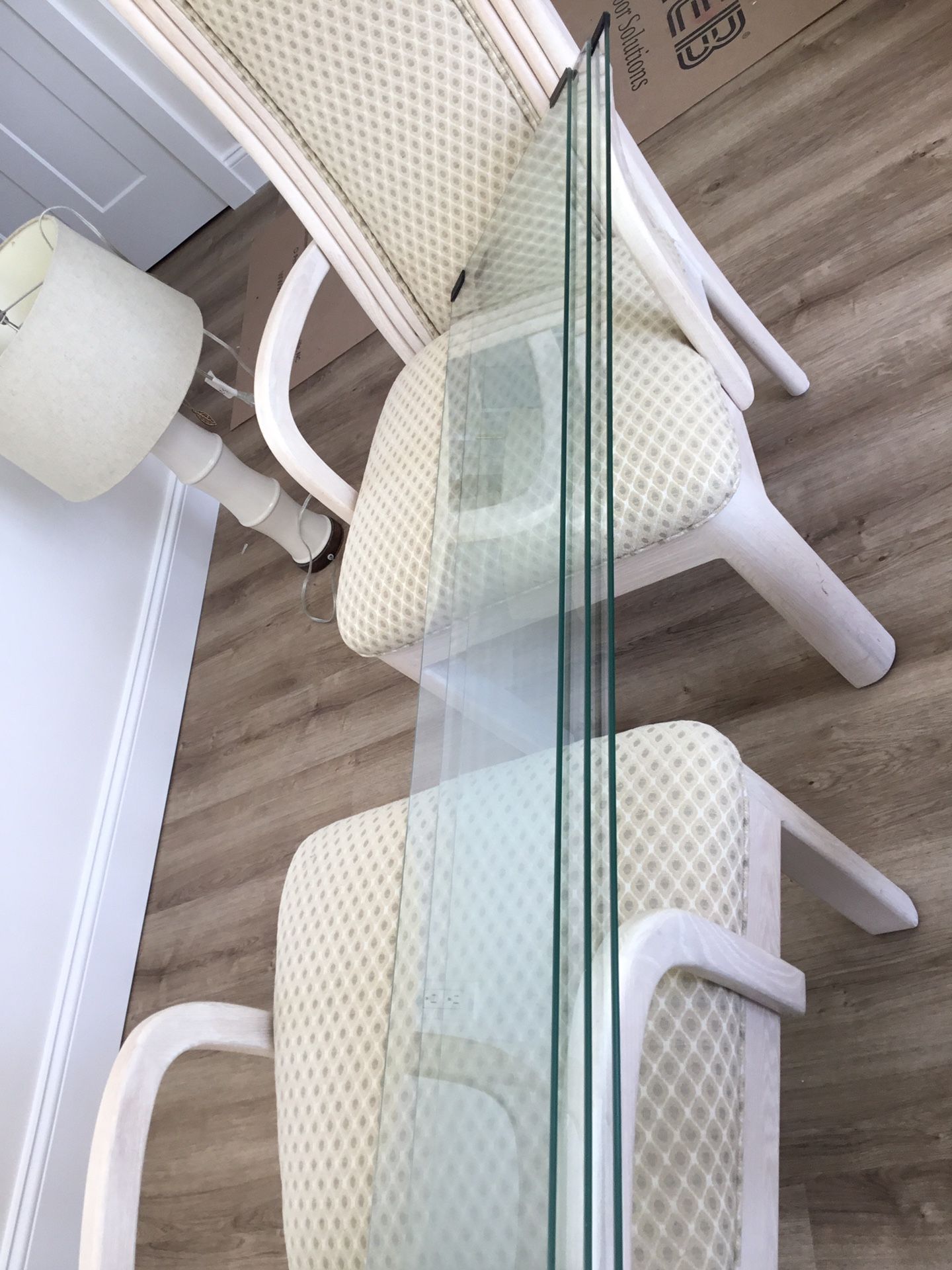 IN GREAT CONDITION- 3 GLASS PANELS THAT WERE DOORS FROM CHINA CABINET- NO CHIPS OR SCRATCHES FACTORY FINISHED EDGES NEED TO REMOVE MATERIAL FROM MAGNETIC CLIPS THAT WERE ON THEM 1/8 THICK 44 INCHES LONG 13 INCHES WIDE