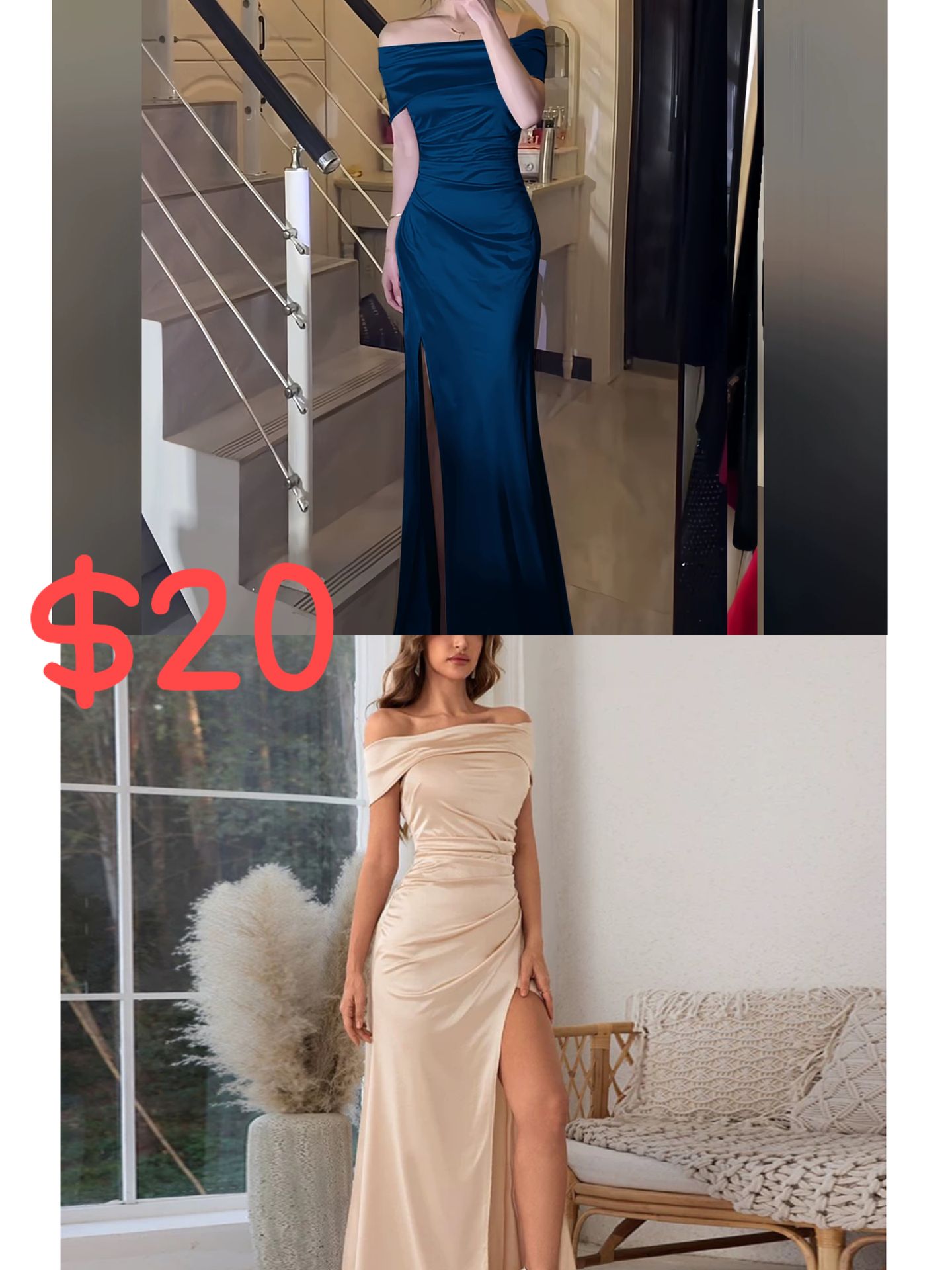 Brand new, never worn off-shoulder formal dress. Made of smooth silk fabric with an elegant high-low design. Perfect for prom, parties, weddings, or special occasions. Size: M Fits approximately 100–125 lbs.