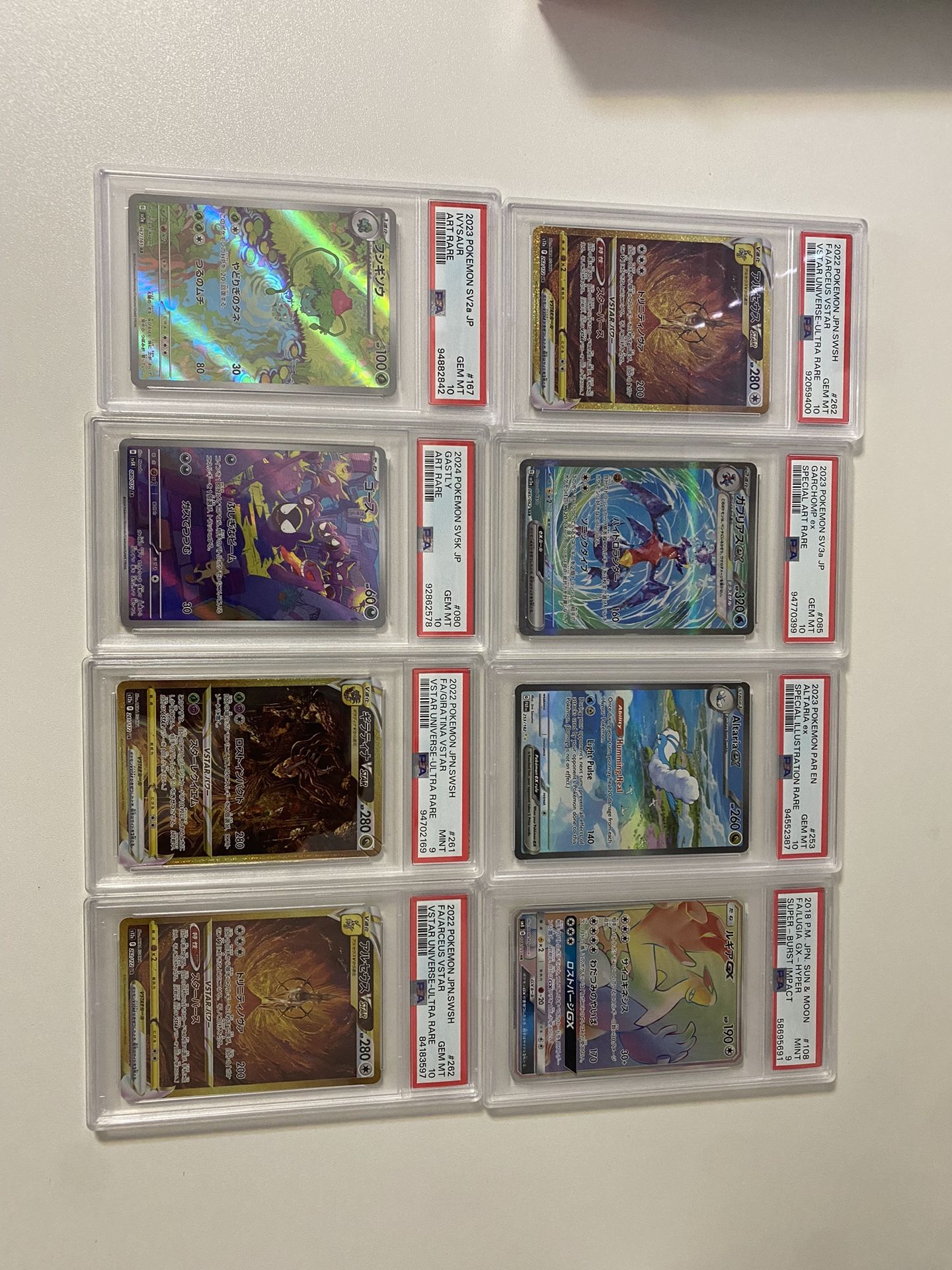 Will do trades!! 80% on trades my Favor Lugia psa 9 - $190 Squirtle AR Psa 10 - SOLD Alteria EX Psa 10 - $140 Garchomp Ex psa 10- $90 I have 2 Arceus UR Psa 10 - Each $110 1 left Giratina psa 9 - SOLD Gastly AR Psa 10- SOLD Ivysaur Ar Psa 10 - SOLD