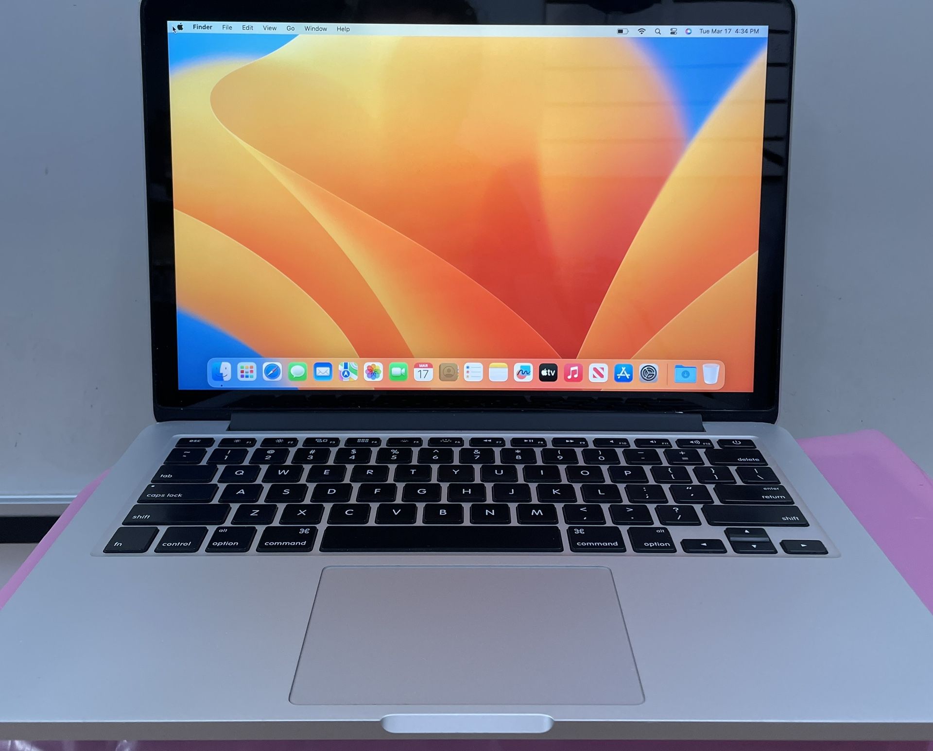 For sale used laptop Specs: Brand: Apple MacBook Pro Model number: A1502 Drive: 256gb SSD Ram : 8 Gb Processor: Intel core i5-4258U Operating system: MacOS Ventura Screen size : 13” screen Year: 2013 Address 3825 El Cajon blvd San Diego ca 92105 Monday-Saturday 10-6pm Works well. Comes with charger