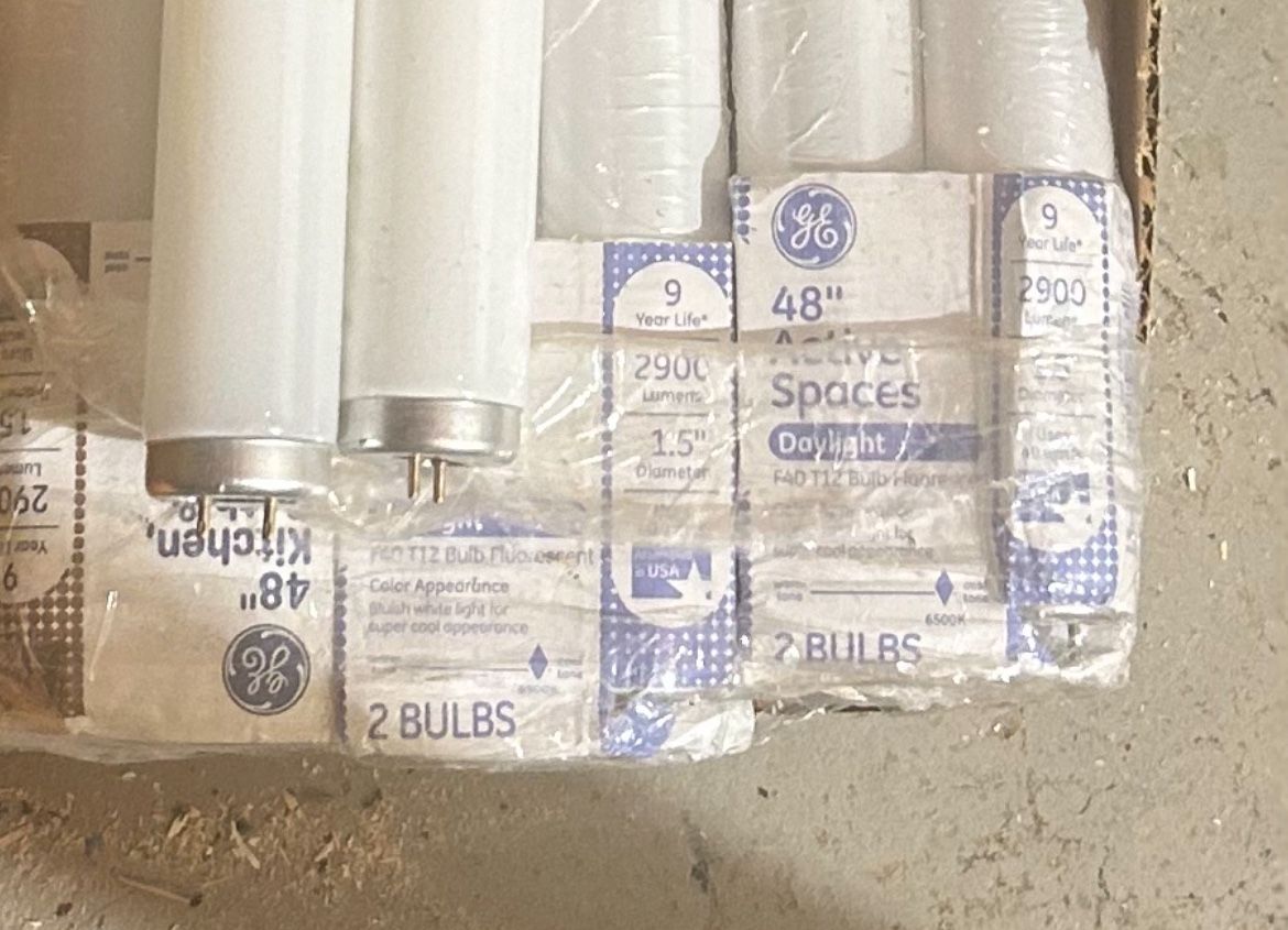 Brand new box of 4 foot light bulbs. High quality. About 25 of them. Selling for just 2$ each!