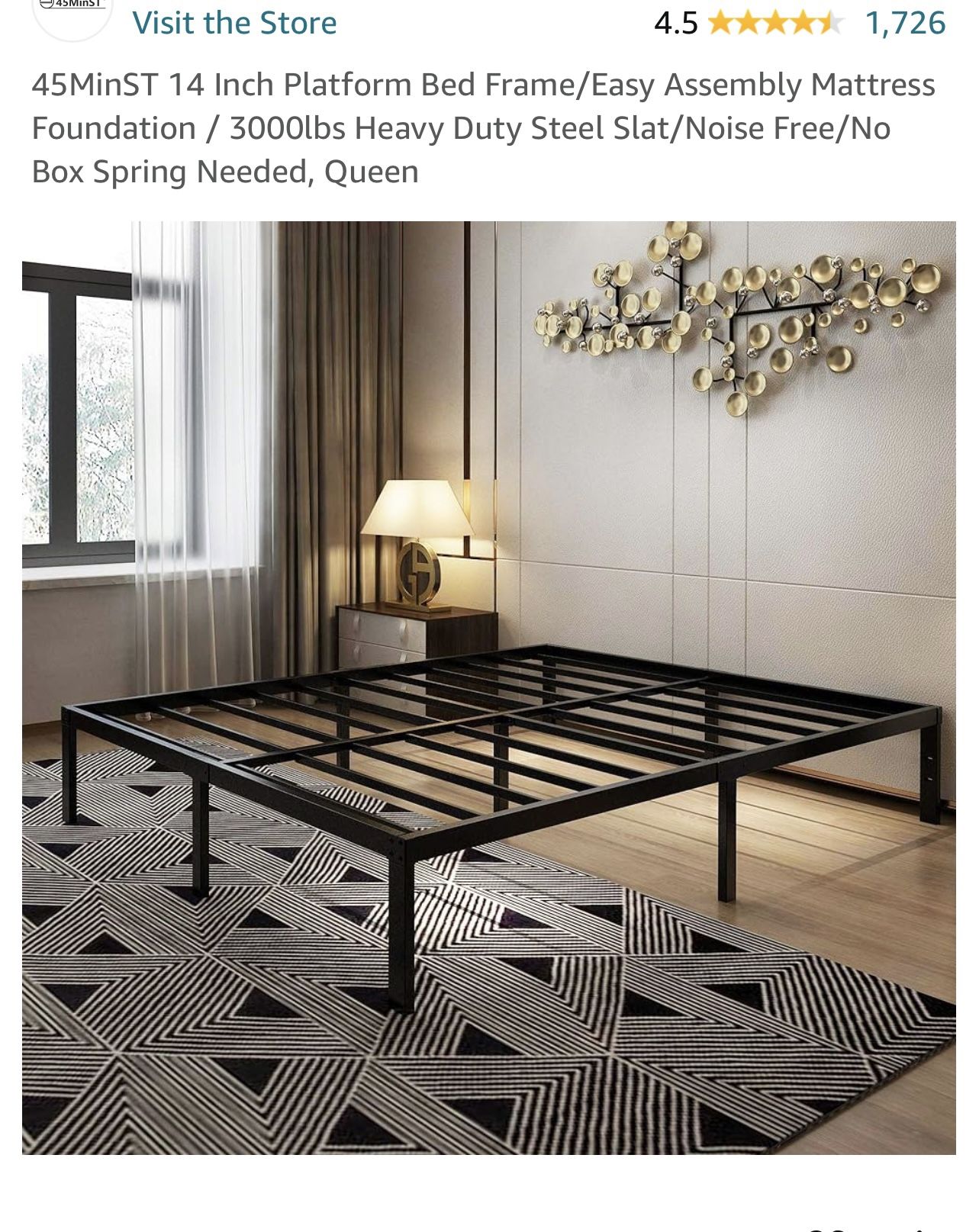 14 Inch Platform Bed Frame/Easy Assembly Mattress Foundation / 3000lbs Heavy Duty Steel Slat/Noise Free/No Box Spring Needed, Queen