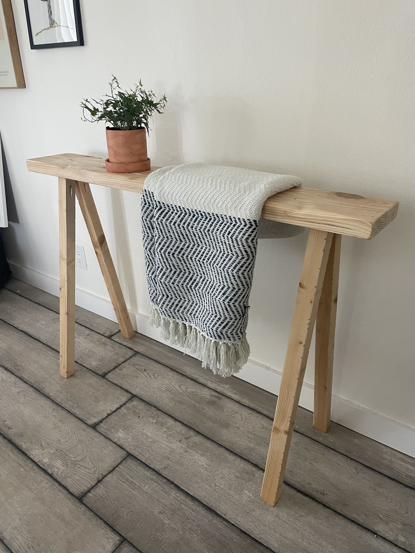 Stylish tall bench, combining design with practical use, perfect for entryway bedroom living room! Dimensions 30 inches height 42 inch length 12 inch depth Local pick up available Custom orders available along with bundles!