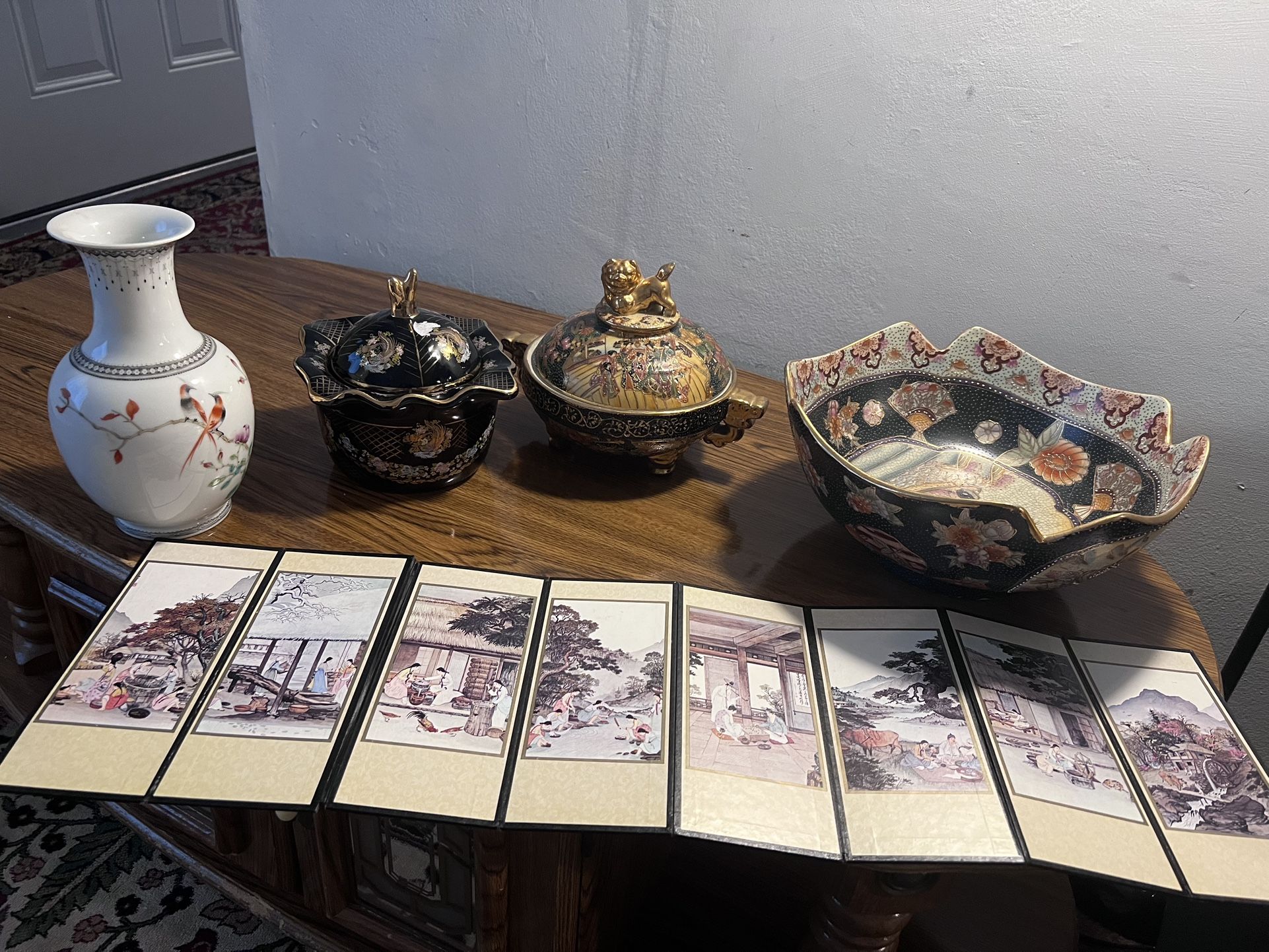 Five pieces of Asian arts the bowl has crack but not noticeable in $60 Local meetup only