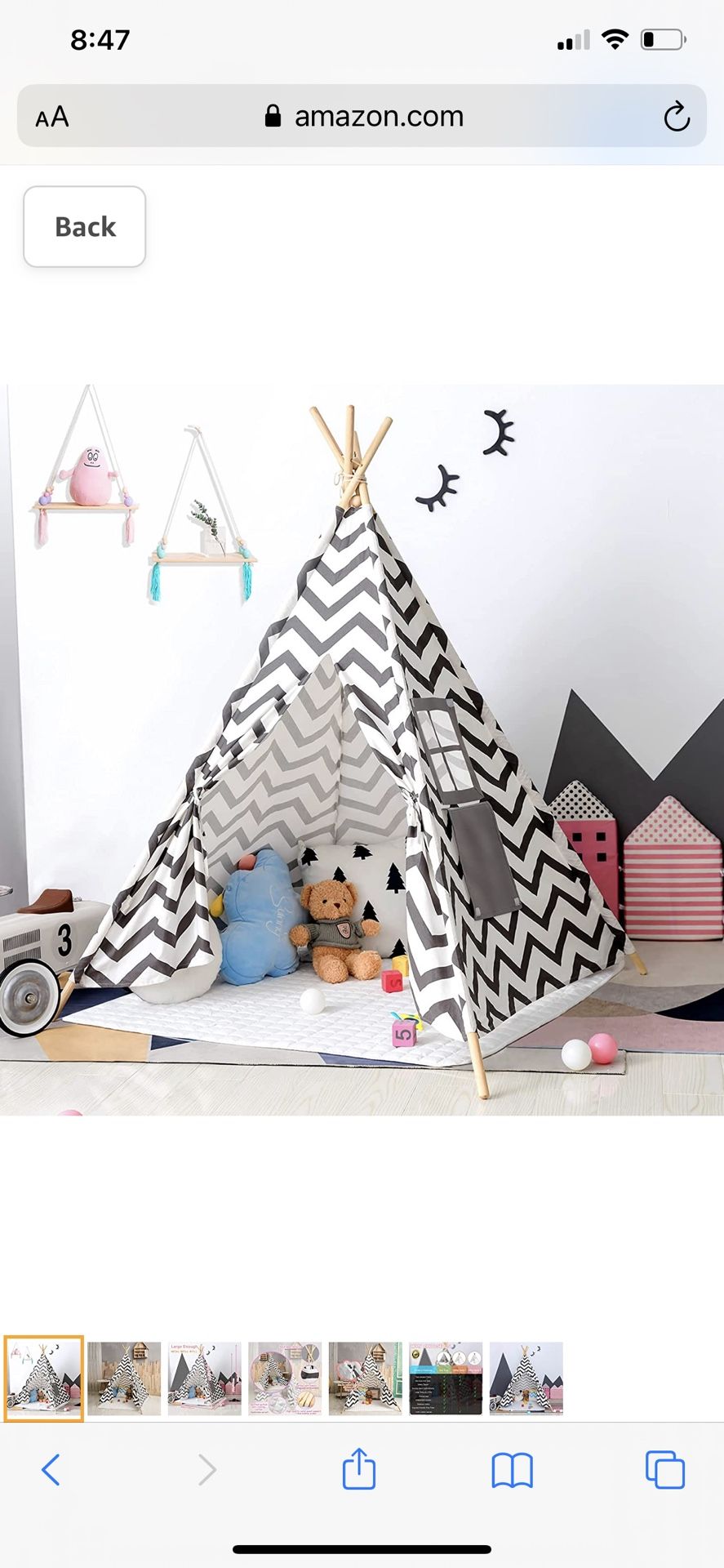 #3 Why Do Choose Our Kids Tent? 1. 100% cotton canvas fabrics and lace, durable wooden poles free of chemicals, no irritating smell. 2. Easy to assembly and fold, large enough to fit 1-4 kids. 4. Children's own little space where they can play, read, nap or just use their imagination. 5. Luxury decorations for the children's room or living room. 6. Our small boy children adorable teepee tent is a good gift for holidays, kids' birthdays and parties, which provides fun playtime for toddlers. 7.Ideal for bedrooms, playrooms, lounge room, nursery room, children's photographic, also suitable outdoor use, like for the beach, picnic, outdoor wedding party! Specification: Material: Pine + 100% cotton Tent Size: 65 x 45 x 45 inches Mat Size: 14.3 x 41.3 inches Color: Pure white/yellow What You Get: 1x Tent 1x Flag Banner 1x Fairy light 1x Carry bag 1x Use instruction 8x Connector 12x Pine pole Features & details More Stable & Safe - We know that for parents, children's safety is always the first priority, our kids teepee tents indoor are made of 100% pure natural cotton canvas, no paint and odorless. Our play tent poles are made of sturdy pine wood and are free of chemical odors and harmful substances. We have tested our teepee's to ensure a sturdy product, that withstands the test of time and we take pride to give children a healthier environment. Ideal Gift & Loving Moments - Worrying about next weekends and gifts for special days? Leave it to us, we have prepared this special upgraded teepee tent for kids. Please do ENJOY a chic and creative gift of this easy assemble teepee with your youngsters. You could imagine the smile and heartfelt happiness on their faces, they will play, imagine, read, nap, and spend some alone time in their toys tent. This baby play tent is a gift for kids. Portable & Foldable Toddler Tent- We carefully plan 3 segments in one pole with spin-in connectors for the easy storage and assemble. No need to worry about the connectors fitting issue, can be easily assembled Within few minutes by an adult (refer to the detailed instructions manual). Children can also participate in the assembly together to develop hands-on skills. Our play tents for kids are easy to fold, you can take it outside to travel or have a picnic wherever you want! Indoor & Outdoor Play - Our kids tent measures 65" x 45" x 45" inches, can accommodate several children at the same time. Your kids can play with their tipi tent wherever they want, like bedroom, classroom, gardens, beach and more. These canvas teepee designed with a breathable mesh window to keep your boys and girls a safety and funny space to play and relax in, unleashing their dreams of princess or the chieftain.