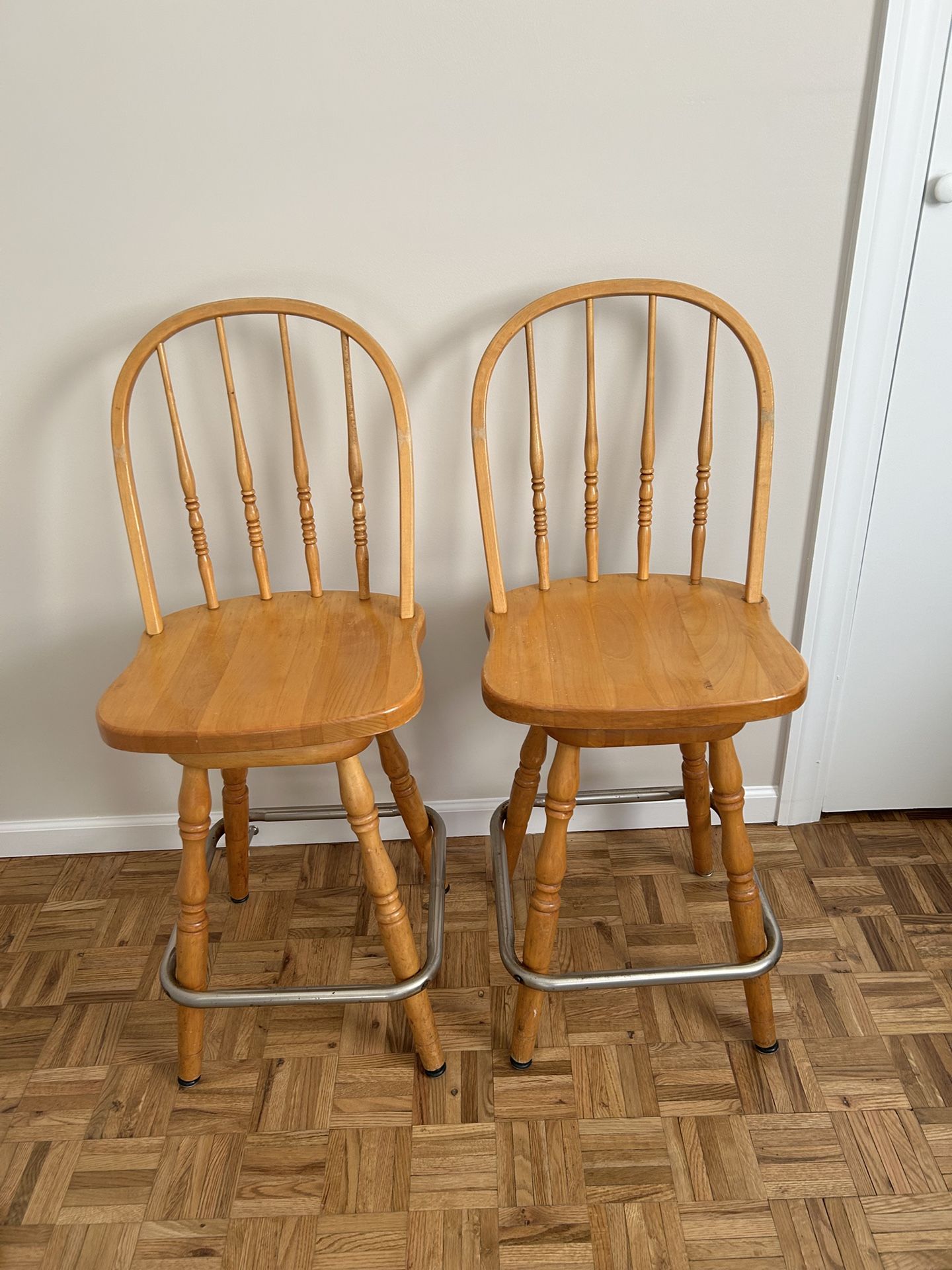 Pair of swivel bar stools 42 inches total height 26 inches seat height.