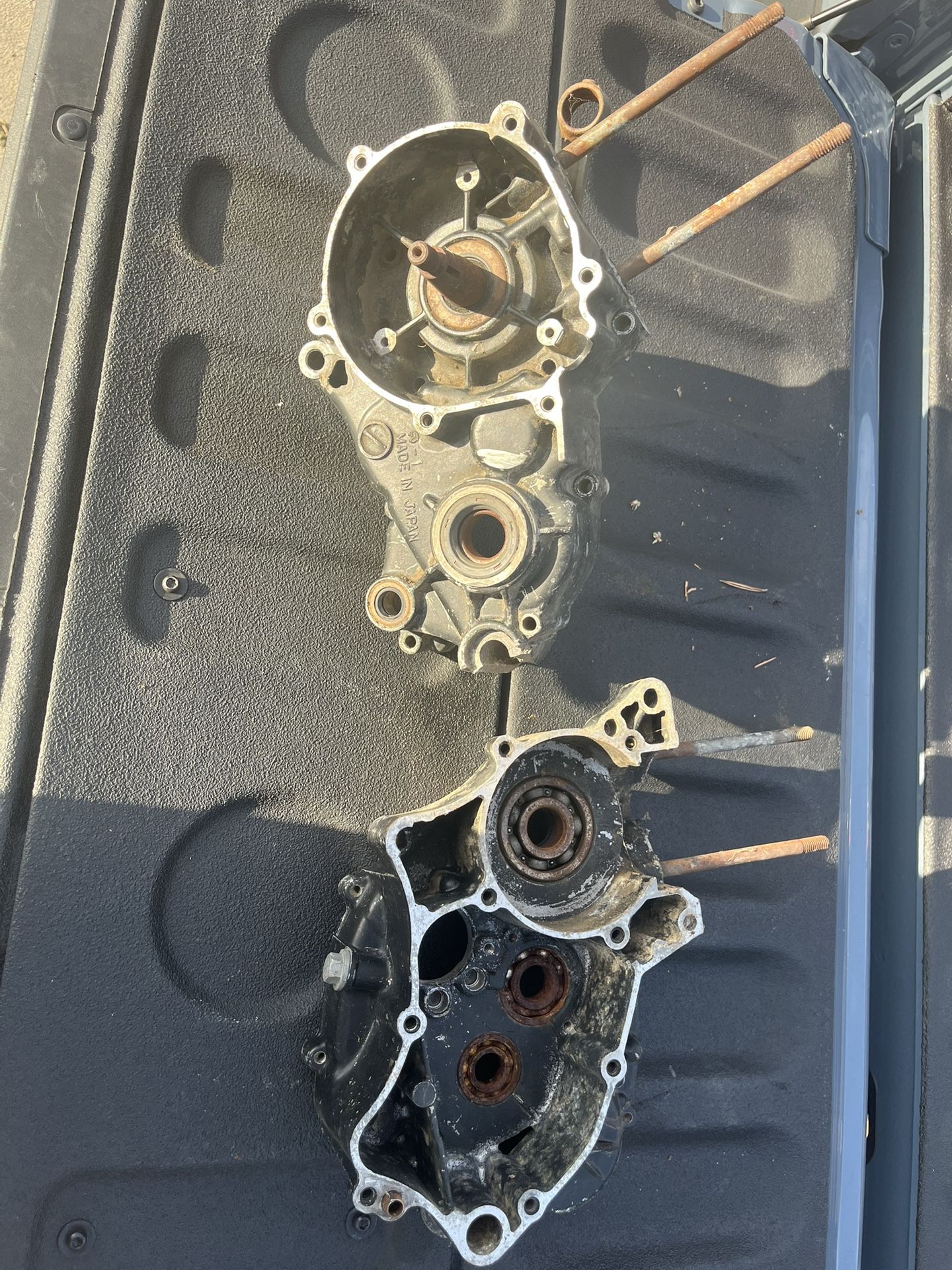 1981 Kawasaki KX80 main engine cases and clutch cover. Left case is damaged (hence price) but right is in good condition. Clutch cover is also in good shape. Will come with other small engine/trans parts not pictured. $20 thanks!
