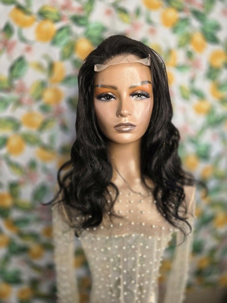 18" Body Wave Human Hair Wig Black New 4x4 Lace Front
